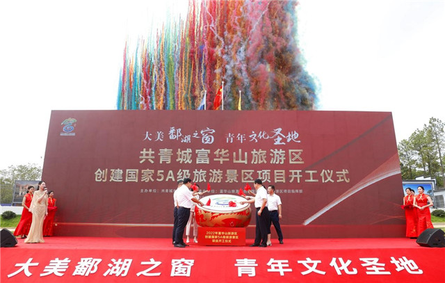 9月25日,江西共青城市舉行富華山旅游區(qū)創(chuàng)建國家5A級旅游景區(qū)項目開工儀式,相關(guān)領(lǐng)導(dǎo)共同敲響開工鼓,標(biāo)志著富華山旅游區(qū)創(chuàng)建國家5A級旅游景區(qū)一系列項目開工建設(shè)。