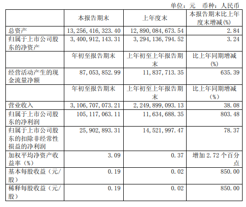 太極集團(tuán)25日晚間披露一季報(bào),今年一季度實(shí)現(xiàn)營(yíng)收31.07億元,同比增長(zhǎng)38.08%;歸屬于上市公司股東的凈利潤(rùn)1.05億元,同比增長(zhǎng)803.48%。每股收益0.19元。