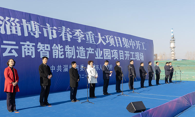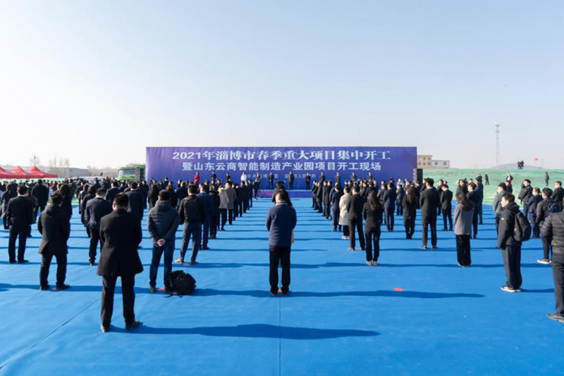 開工儀式上,江敦濤宣布2021年淄博市重大項目集中開工。此次淄博市春季重大項目集中開工活動的市、區(qū)重大項目共227個,總投資1258億元,也是全省首個重點項目集中開工的地市。山東云商智能制造產(chǎn)業(yè)園區(qū)一期總占地325畝,總建筑面積15萬平方米,預(yù)計今年10月份建成,約入駐企業(yè)30家。一期園區(qū)建設(shè)招商入駐完成后,預(yù)計年產(chǎn)值40億元,稅收貢獻(xiàn)2億元,新增就業(yè)崗位400人。