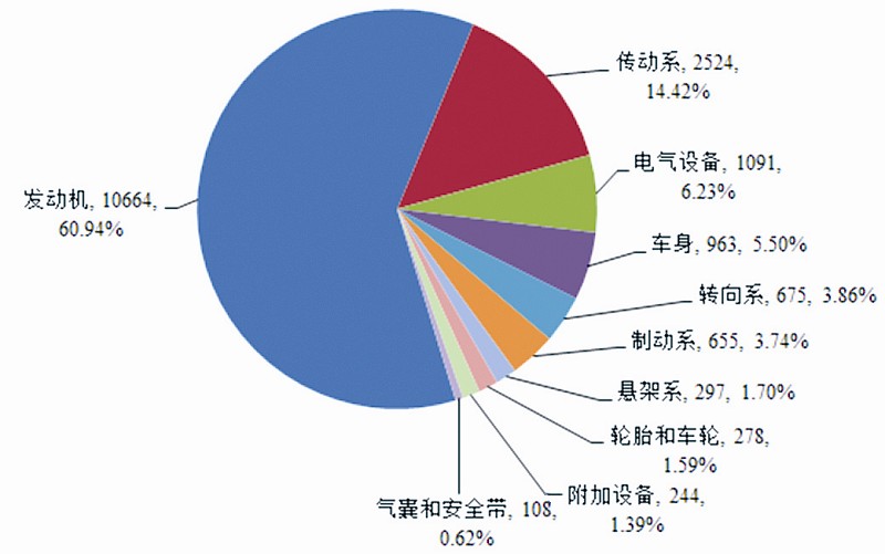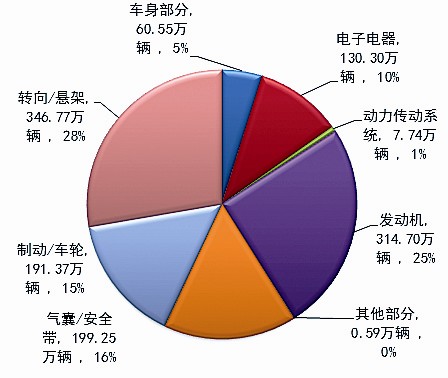 缺陷涉及總成召回數(shù)量分布