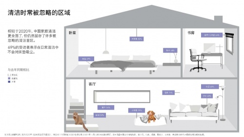 而塵螨的排泄物是常見的過敏原之一,對付塵螨和頑固灰塵需要徹底的深度清潔,但很多亟需解決的“精細(xì)深度”清潔痛點(diǎn),往往制約了人們深度清潔的實(shí)際效果。 痛點(diǎn)一,難以清潔的復(fù)雜表面及易被忽視的死角縫隙依舊藏污納垢。戴森提醒消費(fèi)者,居家環(huán)境中,除地面、桌面等易受重視的大面積平整區(qū)域外,沙發(fā)、床褥等室內(nèi)軟裝是大部分中國家庭的清潔盲區(qū)。同時,如鍵盤、裝飾物等結(jié)構(gòu)復(fù)雜的表面,或燈罩、顯示屏等易碎或易損的物品,往往難以實(shí)現(xiàn)深度清潔;家裝中難以觸及的縫隙角落易形成灰塵堆積,也往往藏污納垢,或許正是這些造成了人們在深度清潔中知難而退,令清潔效果事倍功半。 痛點(diǎn)二,養(yǎng)寵家庭飽受毛發(fā)清潔及“看不見的”灰塵困擾。《報告》顯示,中國的養(yǎng)寵率已達(dá)35%。而寵物毛發(fā)及皮屑上攜帶“看不見的”致敏蛋白質(zhì)顆粒,因質(zhì)量輕、體積小,易隨空氣飄散至家中各處,在易感人群中可能會引發(fā)過敏反應(yīng);同時,因毛發(fā)具有天然油脂及彈性,極易在清潔過程中纏繞打結(jié),難以用普通清潔工具清除,使日常清潔更為棘手。 痛點(diǎn)三,不當(dāng)除塵易導(dǎo)致“二次污染”。中國家庭慣用的傳統(tǒng)清潔方式,如掃地或利用纖維抹布、靜電除塵棒擦除灰塵,不僅清潔效率低,還容易引起揚(yáng)塵,導(dǎo)致花粉等灰塵顆粒懸浮,并隨空氣流動而遷移到家中各個角落,變成“無效除塵”、造成對室內(nèi)環(huán)境的“二次污染”。同時,“看不見的灰塵”在空氣中懸浮傳播,或可能被人體吸入,從而成為潛在的健康隱患。