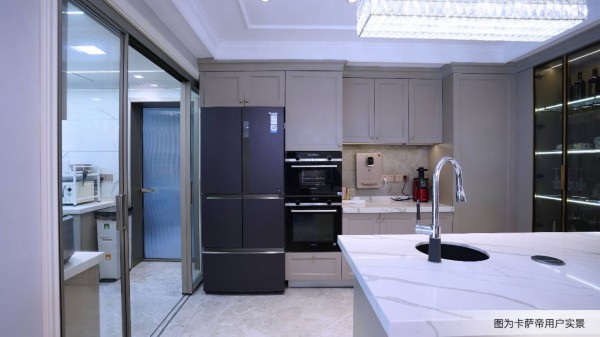 一體化家裝成趨勢(shì),嵌入式廚電獲青睞 以往,家庭廚房更注重實(shí)用性,很多人覺(jué)得能做飯、有洗菜洗碗的空間就足夠了。而如今,廚房正逐漸成為家居空間的核心之一,用戶不僅需要開(kāi)闊的配菜區(qū)、烹飪區(qū),還希望整個(gè)廚居空間整齊有序,最好還能留出親子烹飪、家庭烘焙等日?;?dòng)的空間。此外,最好設(shè)計(jì)風(fēng)格更統(tǒng)一、更美觀。 因此,嵌入式、一體化的廚房逐漸受到高端家庭青睞。目前,在我國(guó)一線城市中,40%以上的新居人群有意愿購(gòu)買嵌入式家電。但這也存在兩個(gè)難題:一是嵌入式家電需要提前定做櫥柜,不太適合精裝房、翻新的老房;二是大多嵌入式家電都是單品,需要一件一件購(gòu)買,這是因?yàn)椴煌a(chǎn)品的嵌入條件不同,給品牌商帶來(lái)了技術(shù)上的多重考驗(yàn)。 而此次卡薩帝推出的新一代廚房三件套,就對(duì)癥解決了這兩大難題。套系中的冰箱、烤箱、洗碗機(jī)既可獨(dú)立擺放,也可嵌入櫥柜。冰箱更是通過(guò)創(chuàng)新底部前置散熱科技和鉸鏈技術(shù),可以做到0cm嵌入櫥柜依舊開(kāi)門(mén)自由,消除了傳統(tǒng)冰箱需要左右預(yù)留2-10cm散熱縫的顧慮。碰到櫥柜尺寸不夠、水電走線不合適的情況,卡薩帝七星級(jí)服務(wù)團(tuán)隊(duì)還能提供場(chǎng)景化局改服務(wù),確保無(wú)論是新裝房還是老房子都能安裝使用。