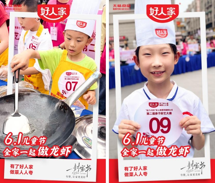 好人家“一封家書(shū)”欄目自開(kāi)辦以來(lái)一直舉辦多樣化的親子活動(dòng),鼓勵(lì)孩子們制作各色菜品收獲新體驗(yàn)。去年五四青年節(jié)期間,好人家與四川旅游學(xué)院合作,成立了“好人家夏令營(yíng)探索小隊(duì)”,來(lái)自全國(guó)各地的小朋友一同走進(jìn)天味食品工廠,探索好人家守護(hù)自然風(fēng)味的秘密,在老師、家長(zhǎng)和好人家產(chǎn)品的助力下,孩子們掄起大勺為父母下廚,制作了麻婆豆腐、鮮番茄雞蛋湯等美味佳肴,好人家特別為孩子們頒發(fā)“美味獎(jiǎng)牌”,讓孩子們感受烹飪的樂(lè)趣。