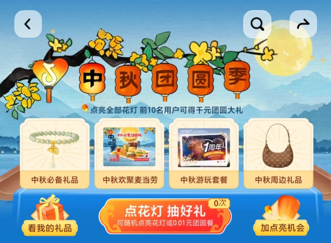 要說中秋有什么能讓快樂加倍,除了和家人歡聚,那就是與驚喜不期而遇。活動期間,上抖音搜索“中秋團購”,點擊卡片進入「中秋團圓季」主會場,即可參與集卡抽獎贏好禮。集卡過程中好運掉落,就有機會獲得超值禮品,集卡合成中秋燈籠后,還有機會贏取高額大禮,讓驚喜福利“喜上加喜”。一大波福利正在加載中,還在等什么?馬上沖沖沖!