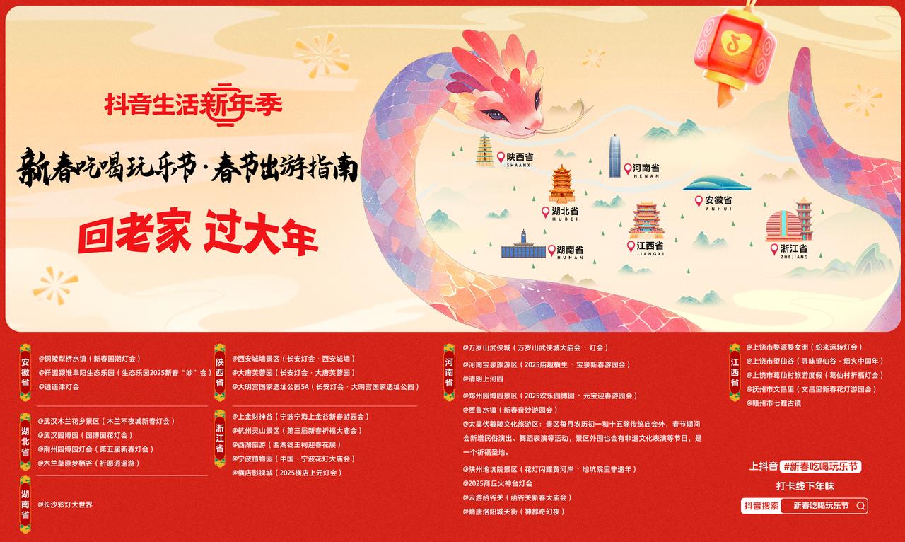 人間煙火處,年味漸濃時(shí)!城市的霓虹再耀眼,也比不上家鄉(xiāng)那盞為你長(zhǎng)明的燈火,為了讓大家沉浸式體驗(yàn)濃厚的年味,今年春節(jié)期間,「抖音生活新年季」聯(lián)合各類燈會(huì)、廟會(huì)商家,挖掘本地特色和家鄉(xiāng)歷史文化底蘊(yùn),通過(guò)特色玩法,聚集全國(guó)30余地區(qū)的年俗活動(dòng),打造「新春吃喝玩樂(lè)節(jié)·春節(jié)出游指南」手冊(cè),點(diǎn)燃新春,與用戶一起分享家鄉(xiāng)好去處,共同開(kāi)啟一個(gè)充滿歡樂(lè)的團(tuán)圓之旅!