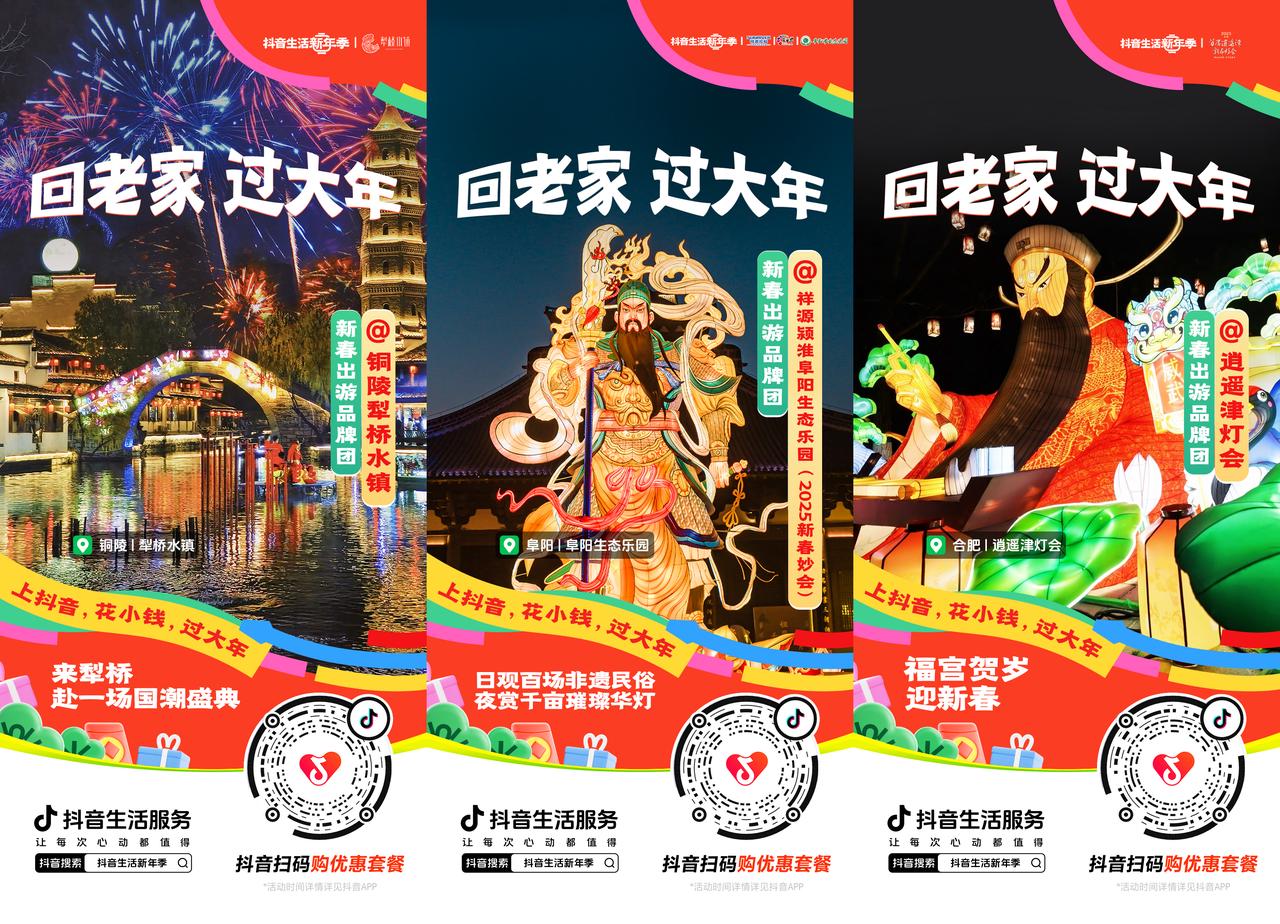 隨著春節(jié)臨近,全國(guó)各地過(guò)年氛圍已拉滿,用戶的過(guò)年熱情也被點(diǎn)燃。一場(chǎng)拉開(kāi)帷幕的新春狂歡,等大家開(kāi)啟,各個(gè)景區(qū)早已就位,快來(lái)沉浸式感受新春燈會(huì)廟會(huì)的熱情與魅力吧! 漫步古城街區(qū),邂逅潮玩盛宴。銅陵犁橋水鎮(zhèn)上演“新春國(guó)潮燈會(huì)”,梨花院落溶溶月,柳絮池塘淡淡風(fēng),“古”與“新”完美交融,這是獨(dú)屬于古鎮(zhèn)特有的年味;縟彩遙分地,繁光遠(yuǎn)綴天,由自貢花燈匠人打造的非遺華燈亮相在阜陽(yáng)生態(tài)樂(lè)園落地,2025新春“妙”會(huì)正在花燈競(jìng)艷;古逍遙津精彩不斷,多彩市集、游戲互動(dòng)、創(chuàng)意演出,一場(chǎng)穿越時(shí)空的2025逍遙津燈會(huì),共同激發(fā)出古今交融的新活力。