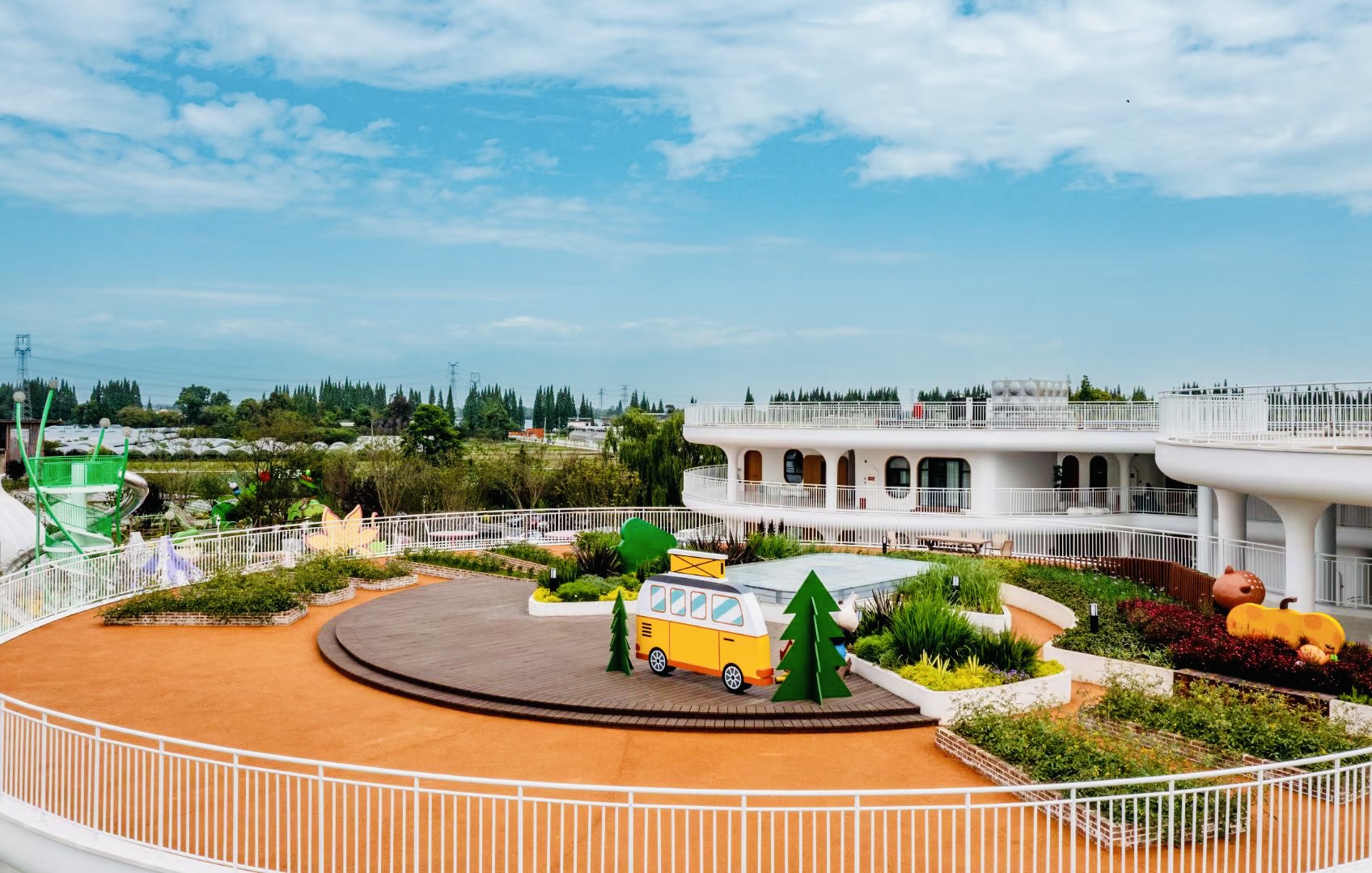 2021年,彭州市鄉(xiāng)村投資發(fā)展有限公司與國(guó)內(nèi)頭部文旅企業(yè)鄉(xiāng)伴集團(tuán)在濛陽(yáng)打造這一項(xiàng)目,將蔬菜產(chǎn)業(yè)與文旅內(nèi)容深度融合,形成了“蔬式生活”的具象場(chǎng)景。原舍蔬香民宿、彭州綠樂(lè)園、菜菜成長(zhǎng)中心、彭派·蔬香集藝文商業(yè)街區(qū)等業(yè)態(tài),串聯(lián)起親子、度假、娛樂(lè)與文創(chuàng),讓“蔬式生活”真正成為可居住、可體驗(yàn)、可消費(fèi)的生活方式。