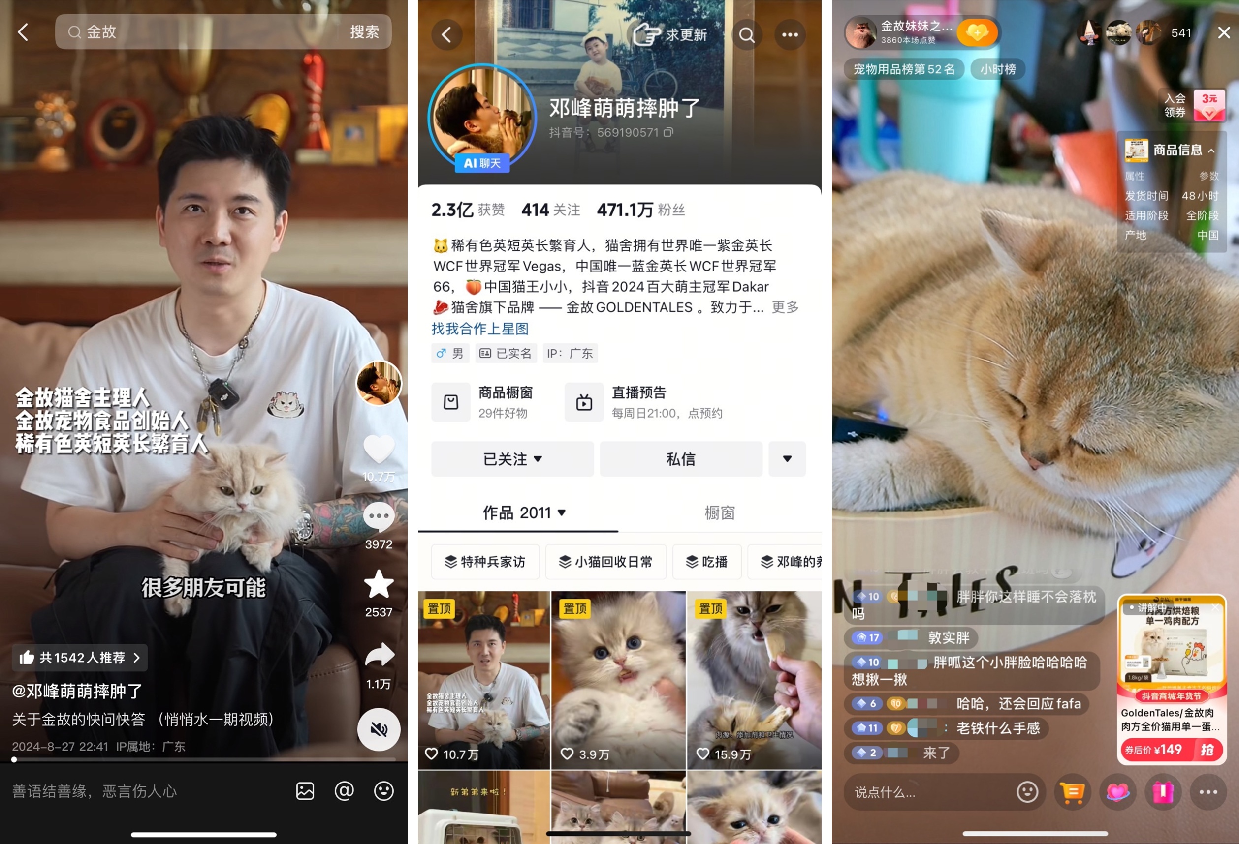乘著這股美好之風(fēng),他創(chuàng)辦的寵物食品品牌「金故」也受到了消費(fèi)者的認(rèn)可。去年雙11期間,品牌單月GMV超5000萬,雙11單日直播GMV超2000萬,品牌搜索曝光環(huán)比增長230%,人均看播時長超10分鐘。