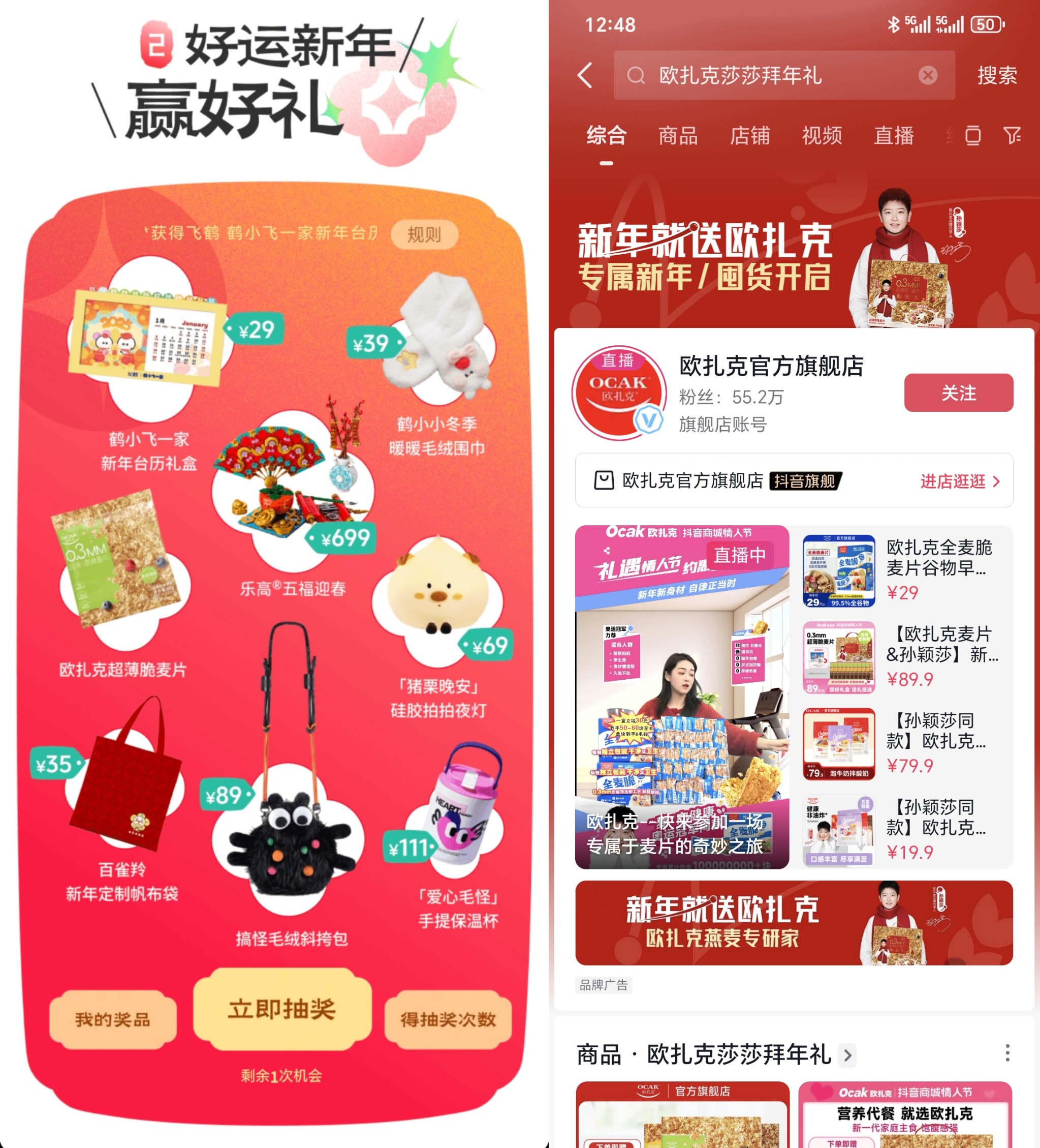 H5專區(qū)內(nèi)展示了歐扎克的達(dá)人創(chuàng)意視頻,通過春節(jié)場景化的內(nèi)容設(shè)計,輕松傳遞產(chǎn)品信息,為品牌專區(qū)進(jìn)一步引流,提升了品牌曝光和用戶觸達(dá)效果。