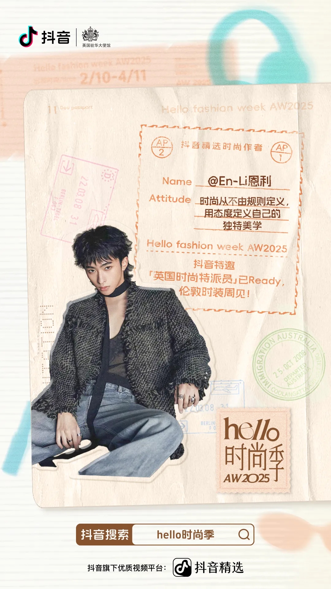 2025年2月20日至24日倫敦時裝周期間,上【抖音】&【抖音精選】搜索#hello時尚季,跟抖音潮人們一起get英倫時尚范兒,【抖音】&【抖音精選】將帶你勇闖時尚圈,去全世界與時尚say hello~