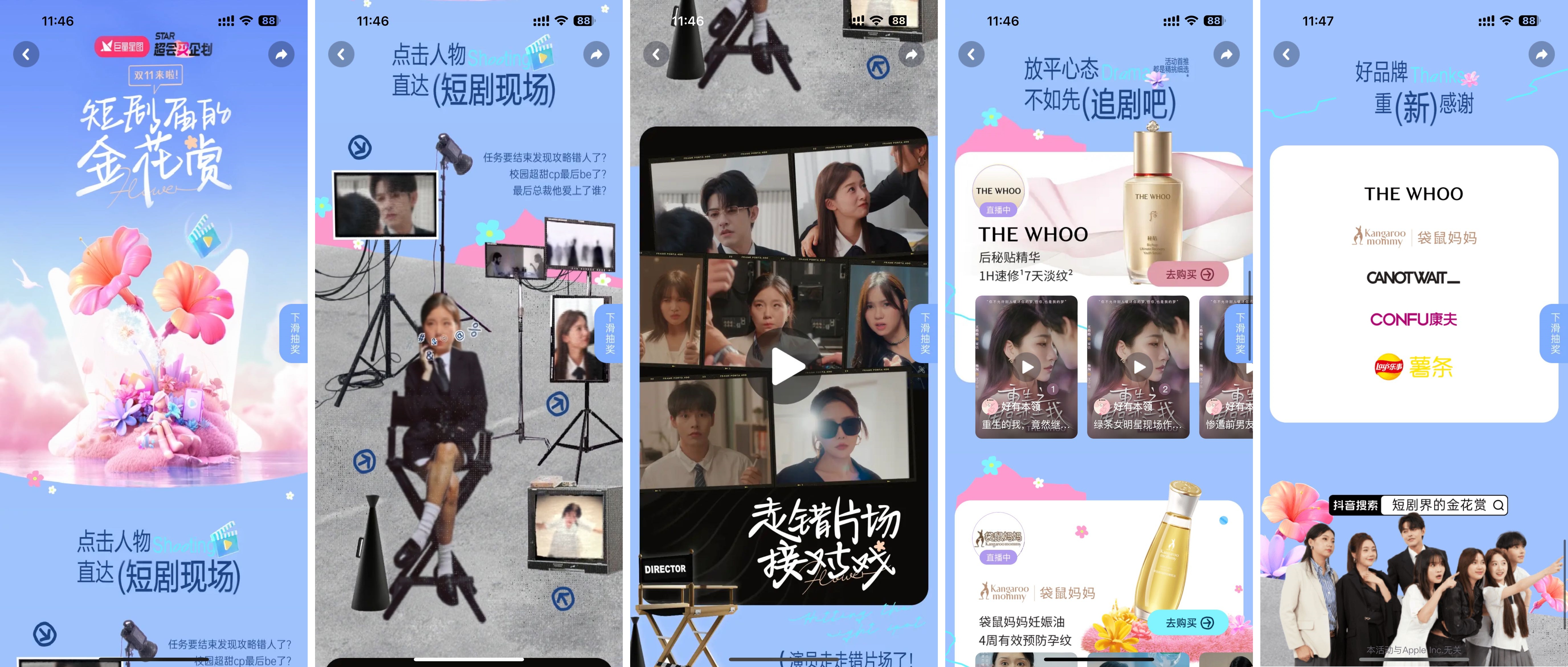 對(duì)此,巨量星圖發(fā)起達(dá)人定制短劇雙十一特別企劃「短劇界的金花賞」,首次邀約超頭部短劇達(dá)人聯(lián)動(dòng)上演官方創(chuàng)意TVC,并通過上線話題頁及短劇會(huì)場(chǎng)聚合品牌定制優(yōu)質(zhì)達(dá)人短劇等創(chuàng)意玩法,探索出品牌大促期間聲量爆發(fā)、破圈種草、后鏈路轉(zhuǎn)化提升的新路徑。截止目前,活動(dòng)主話題#短劇屆的金花賞 播放量已達(dá)4.8億,新增5A人群均遠(yuǎn)超預(yù)期!「短劇界的金花賞」究竟做對(duì)了什么?