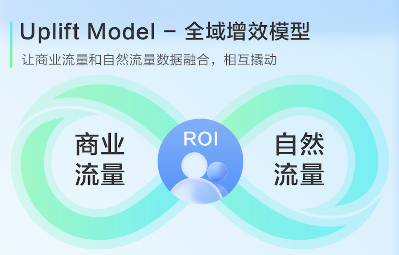 「門店全域推廣」采用了全域推廣的先進技術能力——全域增效模型,通過打破自然流量與商業(yè)流量的劃分邏輯,使兩種流量數(shù)據(jù)互相融合、相互撬動,讓商家整體GMV提升15%-30%。