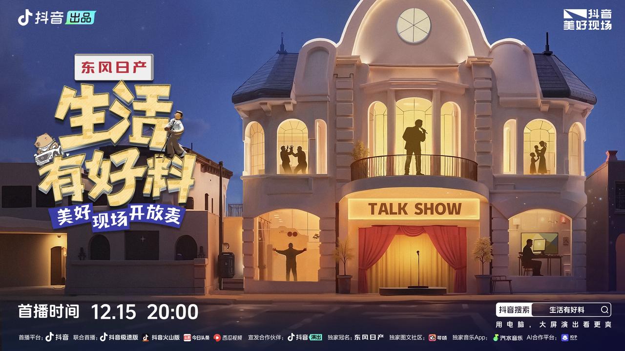 12月15日晚上8點(diǎn),在抖音演出、東方衛(wèi)視、抖音美好現(xiàn)場(chǎng)同步首播,《生活有好料美好現(xiàn)場(chǎng)開放麥》將帶你飛越日常的平淡,探索快樂的邊界,迎接不一樣的星期一!