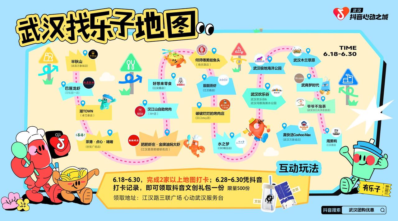 心動(dòng)之城出品的「武漢找樂(lè)子地圖」令初來(lái)武漢的人如獲至寶,包含周黑鴨、半秋山、巴厘龍蝦、何師傅美蛙魚(yú)頭在內(nèi)的美食,讓武漢city帶來(lái)的舌尖熱辣感更加滾燙;還有潮TOWN、武漢歡樂(lè)谷、極地海洋世界、木蘭草原在內(nèi)的休閑娛樂(lè)目的地,讓心動(dòng)武漢更加具象化!