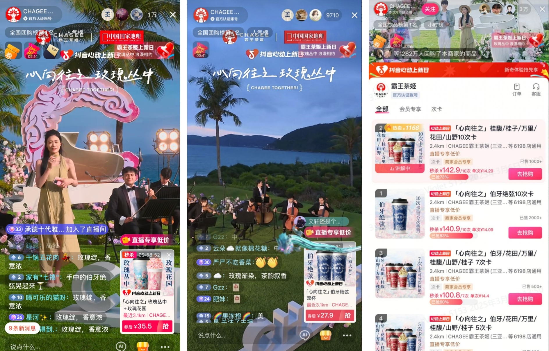 一向會玩的霸王茶姬在直播間玩法上也自有“妙計”。自2月21日起,霸王茶姬便攜手中國國家地理IP,于官方賬號直播間盛大啟動“心向往之 玫瑰叢中”海邊主題實景直播盛宴,精巧策劃了系列令人驚嘆的互動環(huán)節(jié),包括樂團現(xiàn)場演繹悠揚旋律、探索海底玫瑰秘境的奇妙旅程,以及海上煙花的絢爛綻放等,將用戶的沉浸式體驗推向極致;另外,為了真誠回饋“奔赴”直播間的家人朋友們,霸王茶姬特別準(zhǔn)備了低至五折的神秘單品秒殺福利,狠狠“拿捏”著茶友的心巴。