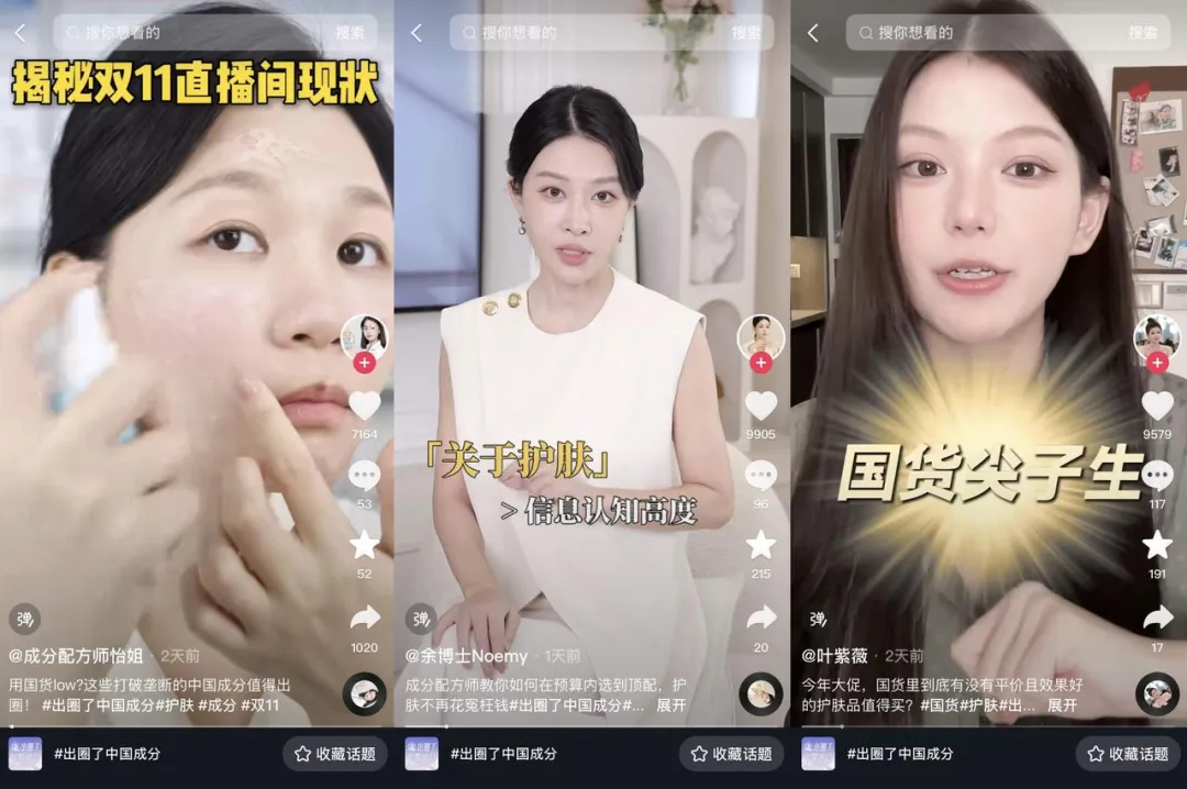 另一方面,消費者更加關注產品本身的質量和價值,而非單純以價格和品牌為導向。比如在護膚美妝行業(yè),過去消費者大多更看重品牌的效應,尤其關注國際品牌,而抖音電商憑借內容傳播優(yōu)勢,以短視頻和直播為媒介,向消費者科普產品的各類成分及其功效,讓消費者對品牌和產品能夠有更深入全面的了解,從而做出更理性的決策。