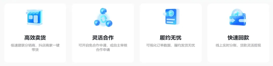經(jīng)營側(cè):平臺主要針對那些不想在店鋪經(jīng)營端耗費(fèi)大量精力的供應(yīng)商,他們可以通過平臺成熟的供應(yīng)鏈管理體系、降本提效的工具,以及抖系龐大的流量助力,進(jìn)一步打開分銷增長空間。