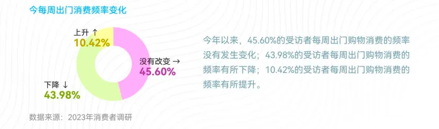 消費者行為變化: 消費者的注意力變得極度碎片化,傳統(tǒng)的廣告和促銷手段效果大幅下降。有41.04%的受訪者表示,他們最近一次逛購物中心或商業(yè)街區(qū)是在三個月以前,而且近七成消費者在線下消費時不再重視打折促銷活動。