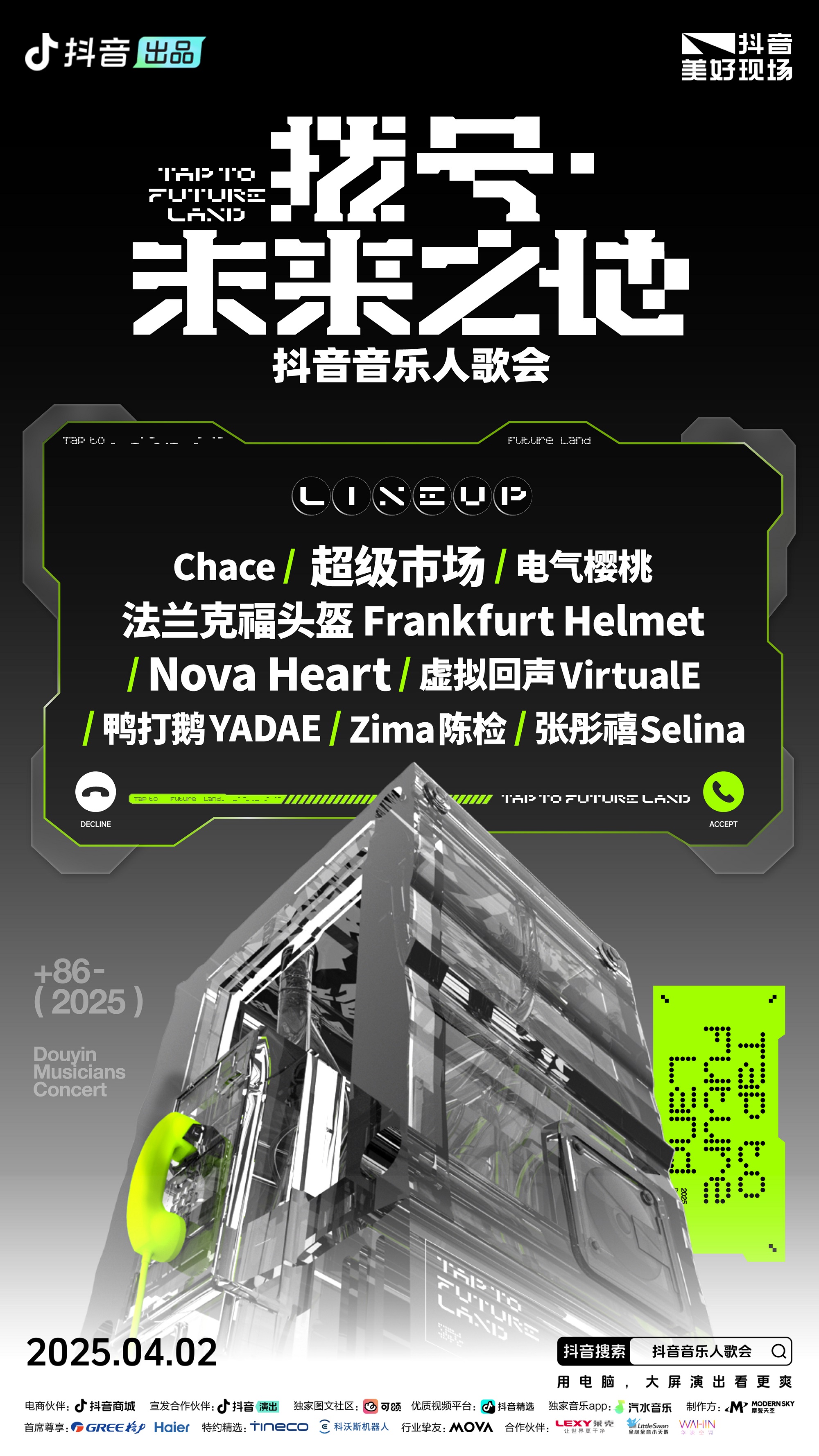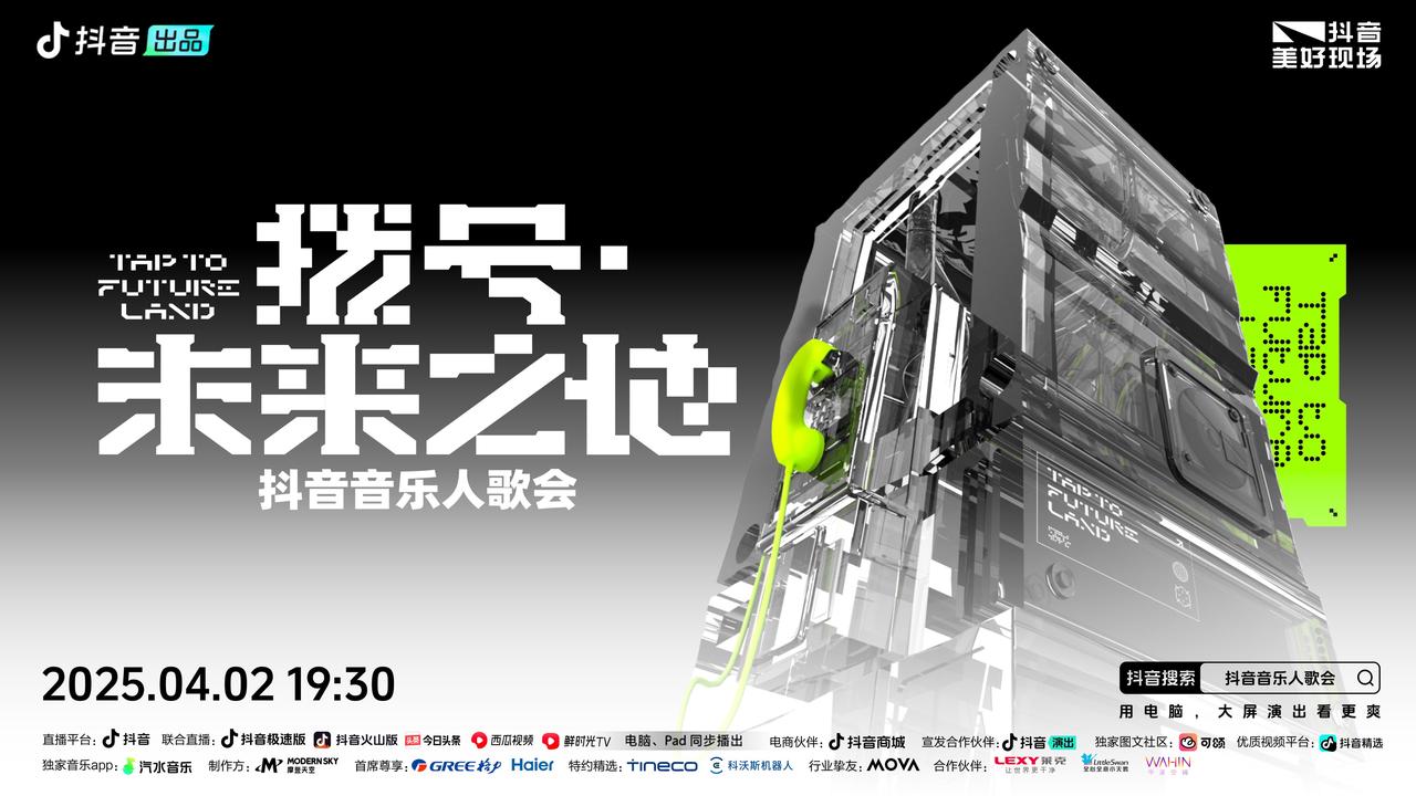4月2日晚,抖音音樂人計劃的首場演出「撥號·未來之地」唱響北京751D·PARK傳導(dǎo)空間,以“TAP”為交互概念,讓電子脈沖從鼓樓胡同中撕開次元裂縫。作為抖音「未來家超頻企劃」的重要一環(huán),這場演出正在以潮流先鋒姿態(tài)探索音樂與未來科技的融合邊界,為線上線下觀眾呈現(xiàn)一場“跨越時空”的視聽盛宴。