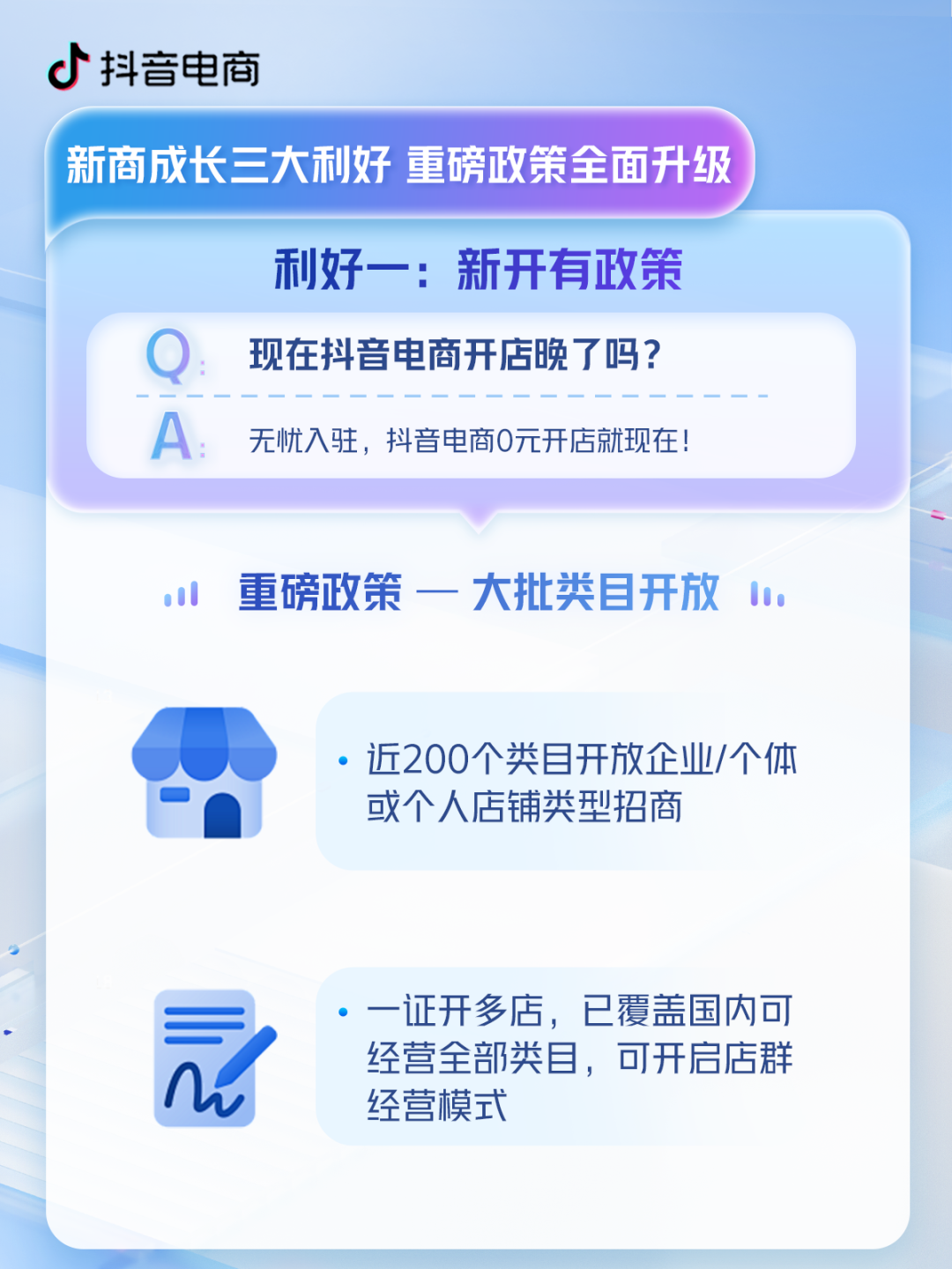 不但新增了近200個類目開放企業(yè)/個體或個人店鋪類型招商,還可以一證開多店。