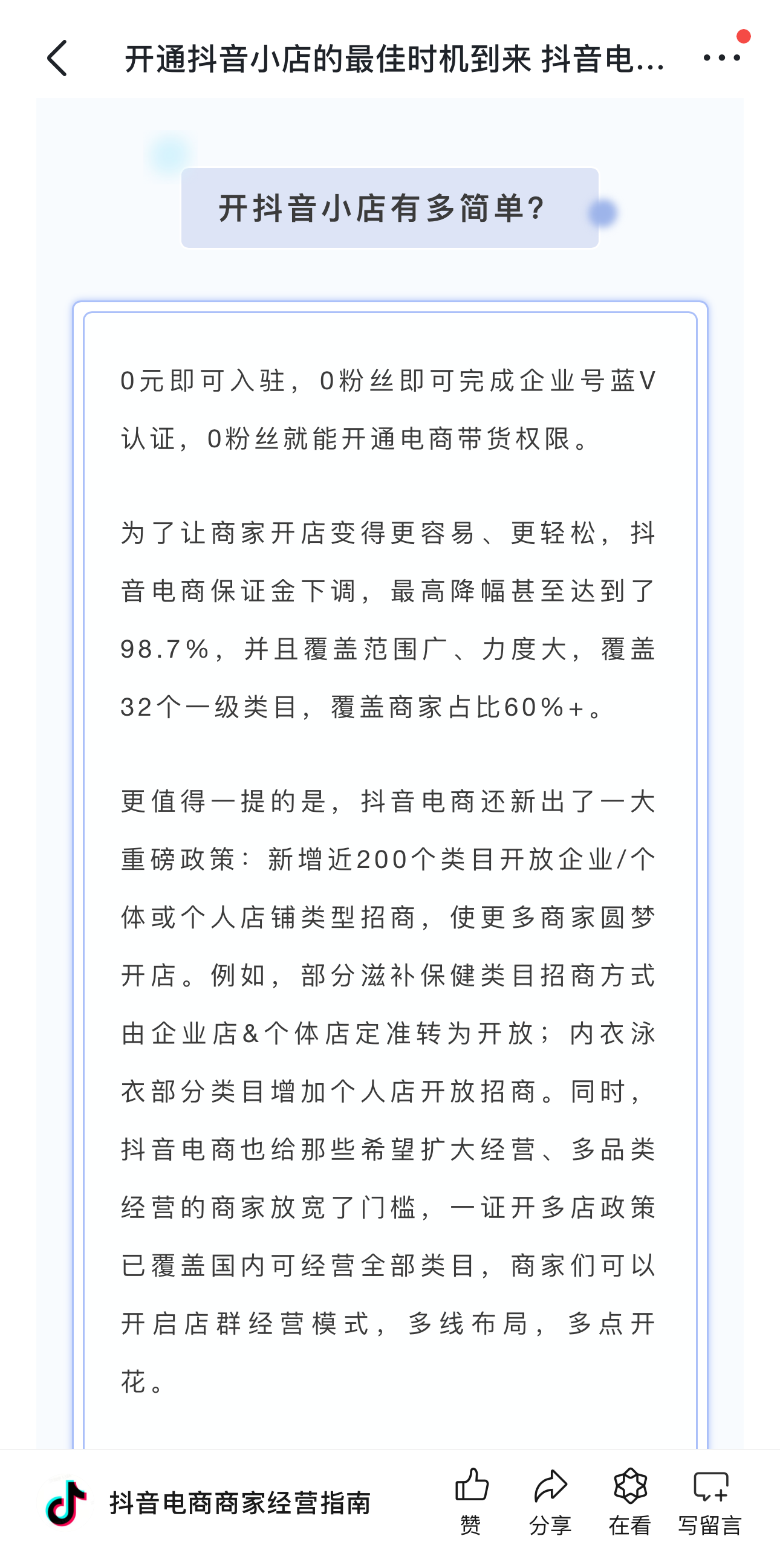 你看,開抖音小店真的很像游戲啊——有攻略引導(dǎo),有新手保護(hù),甚至還有及時反饋和成長獎勵。