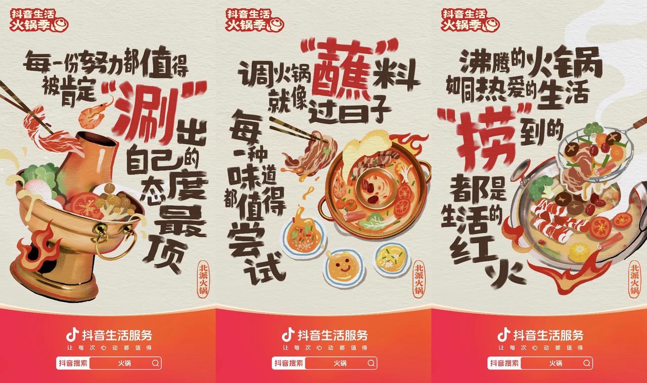 此次「火鍋季」,抖音生活服務(wù)也將圍繞北派火鍋的“涮”、“蘸”、“撈”特色,全方位展現(xiàn)北派火鍋的魅力。北方吃火鍋講究的是氛圍感,“涮”、“蘸”、“撈”三步神韻一步不可少,此外火鍋的魅力還在于蘊(yùn)含著不同的人生態(tài)度:“涮”是一種包容處事的心態(tài),四海八荒的美食,皆可入「涮」鍋,萬般好滋味只管入肚,從不堵心;“蘸”包含著對未來的期許,添上一份「蘸」料的“色彩”,酸甜苦辣皆是滋味,人生同樣如此,不管如何搭配,都值得去嘗試;“撈”展現(xiàn)的是松弛的生活狀態(tài),一撈之間,總有些未知,是葷是素,均是美味,人生百態(tài),均是體驗(yàn),享受就好。