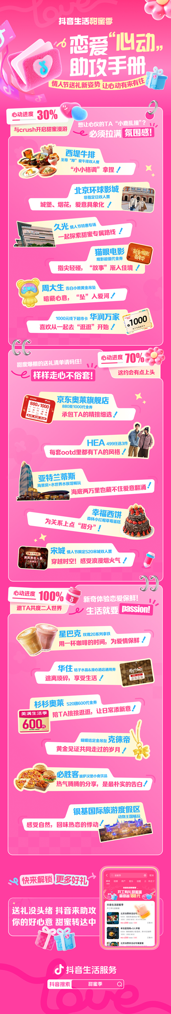 2·14不只是情人節(jié),更是表達(dá)愛(ài)意的好時(shí)機(jī)!送禮不如送體驗(yàn)。這個(gè)情人節(jié),抖音生活服務(wù)推出「甜蜜季」特別活動(dòng),全網(wǎng)尋找“最會(huì)送禮”的你!無(wú)論是一起逛商場(chǎng)、做情侶手工,還是一起去旅行,和TA在一起的每一刻,都是值得珍藏的記憶。