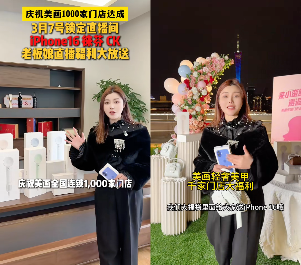 2、高頻互動(dòng)強(qiáng)化情感連接,打造陪伴型賬號(hào) 來自廣州的@美畫輕奢美甲老板娘肖肖,在“廣州小蠻腰”實(shí)景直播,設(shè)置“一元美甲自由”福袋,豪贈(zèng)2臺(tái)iPhone16,僅單場(chǎng)直播就漲粉8900+?;貞洿蛟炖习錓P的初衷,老板娘肖肖認(rèn)為自己擁有美甲師從業(yè)經(jīng)歷,能夠真正理解客戶需求,可以和團(tuán)隊(duì)打造“客戶閨蜜+美畫輕奢美學(xué)主理人”的真實(shí)人設(shè),和客戶交朋友。未來,她將持續(xù)投入老板IP,為粉絲提供更多超高性價(jià)比的產(chǎn)品和服務(wù)。這樣的陪伴型賬號(hào),讓生意的邏輯變成了從產(chǎn)品到情感的遞進(jìn)。