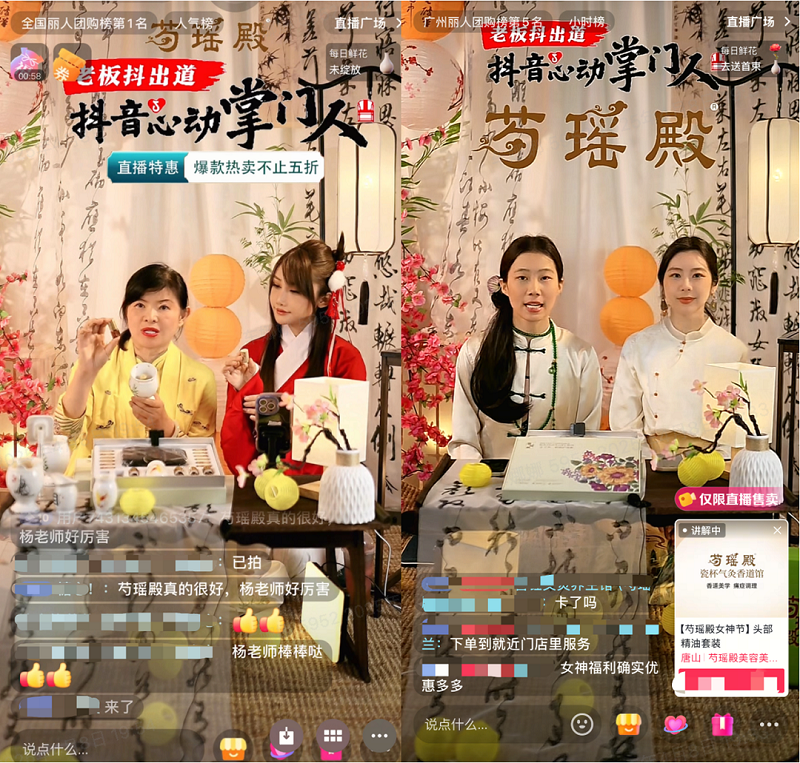 來自抖音的@美畫輕奢美甲老板娘肖肖直播首秀單點(diǎn)爆發(fā)后,@水肌澳CEO李圣烈、@芍瑤殿品牌創(chuàng)始人楊寧、@花間美學(xué)老板娘sasa、@苗霸養(yǎng)發(fā)-王董等4位麗人老板相繼效仿,組成“麗人BOSS天團(tuán)”,直播間累計(jì)GMV超1100萬,漲粉1.7萬+,沖上全國麗人、全國美發(fā)、廣州團(tuán)購等多個(gè)榜單TOP1。亮眼成績的背后,到底有著怎樣的商業(yè)思考呢?