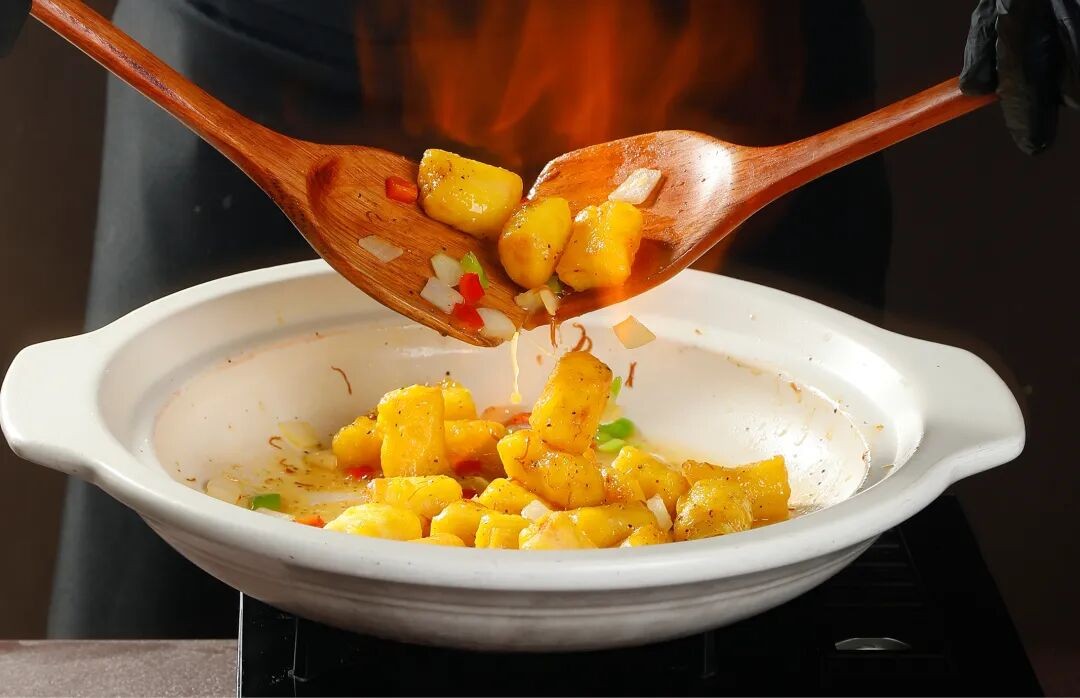 這體現(xiàn)在許多細(xì)節(jié):國家地理標(biāo)志產(chǎn)品--溫縣壚土鐵棍山藥配上黑胡椒,廚師現(xiàn)場堂做,為顧客呈現(xiàn)味覺、視覺雙重盛宴。