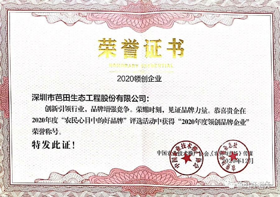 三十一年的堅持,三十一年的創(chuàng)新。芭田專注植物營養(yǎng)、關注生態(tài)與土壤健康,實現(xiàn)肥料技術三級跳,彰顯了民族肥料品牌的力量。 農(nóng)民心目中的好品牌 實至名歸! 2020年,新冠肺炎的沖擊,洪澇、干旱、臺風等自然災害的侵襲,讓整個農(nóng)資行業(yè)在低迷中前行。面對困難,芭田以創(chuàng)新驅(qū)動發(fā)展, 依托貴州優(yōu)質(zhì)磷礦資源、注入“熱法選礦”、“冷凍硝酸分解法”、“高塔聚合磷酸銨”等核心的專利技術,陸續(xù)推出硝硫基三磷復肥、橙皮精油系列等多個功能性產(chǎn)品。這些產(chǎn)品以高貴的硝酸磷肥作為生產(chǎn)原料,注入芭田多項專利技術,能有效提升肥料利用率20%以上,降低肥料投入成本20%。在蔬果等經(jīng)濟作物以及小麥、水稻等大田作物上施用后,農(nóng)作物提質(zhì)增產(chǎn)效果明顯,農(nóng)產(chǎn)品價值提升20%,深受廣大種植青睞。 榮獲2020年度“農(nóng)民心目中的好品牌”之“2020年度領創(chuàng)品牌企業(yè)”榮譽稱號,再次證明了芭田品牌在農(nóng)民心目中的重要地位,也充分說明了芭田在引領行業(yè)發(fā)展中起到的重要作用。 未來,芭田將持續(xù)進行研發(fā)創(chuàng)新,將更多的先進技術應用到肥料產(chǎn)品當中,為農(nóng)業(yè)高質(zhì)量發(fā)展、為農(nóng)民增產(chǎn)增收貢獻力量。