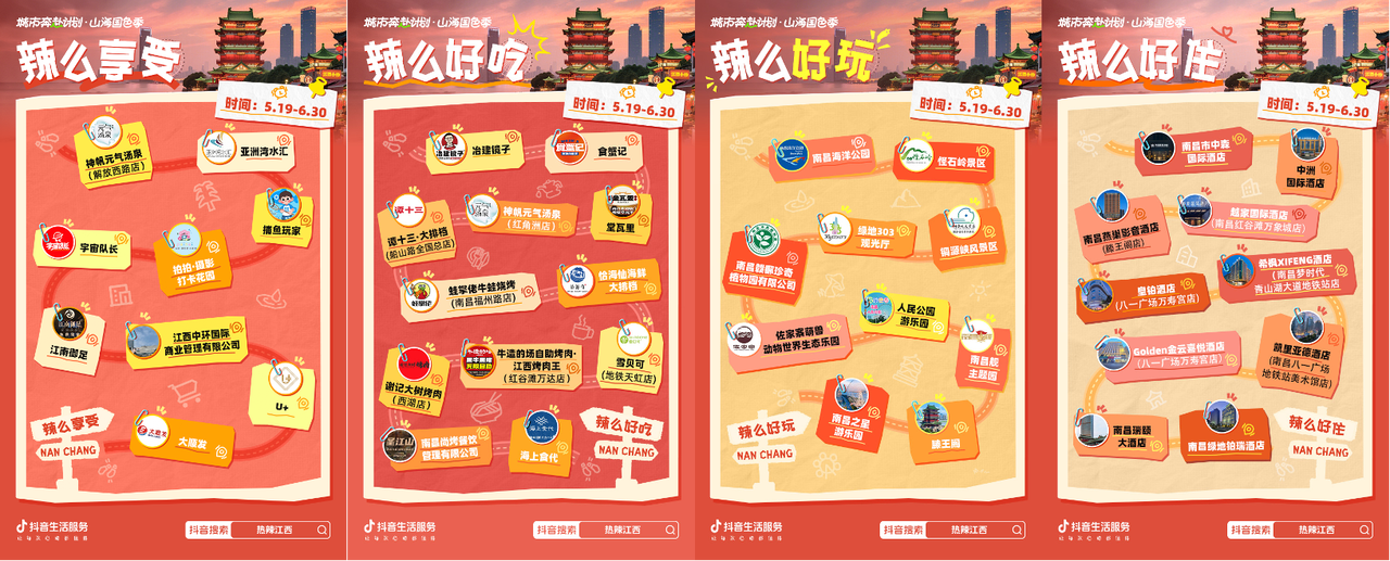 南昌,這座承載著“紅色故都”與“生態(tài)水城”雙重基因的城市,近日迎來了一場以“贛味美食、生態(tài)美景、歷史文化”為核心的消費(fèi)熱潮。抖音生活服務(wù)“城市奔赴計劃-熱辣江西”活動,結(jié)合端午、六一等節(jié)點(diǎn)熱點(diǎn),通過線上線下多元玩法,成功激活春夏消費(fèi)市場,掀起一場“熱辣”風(fēng)暴。