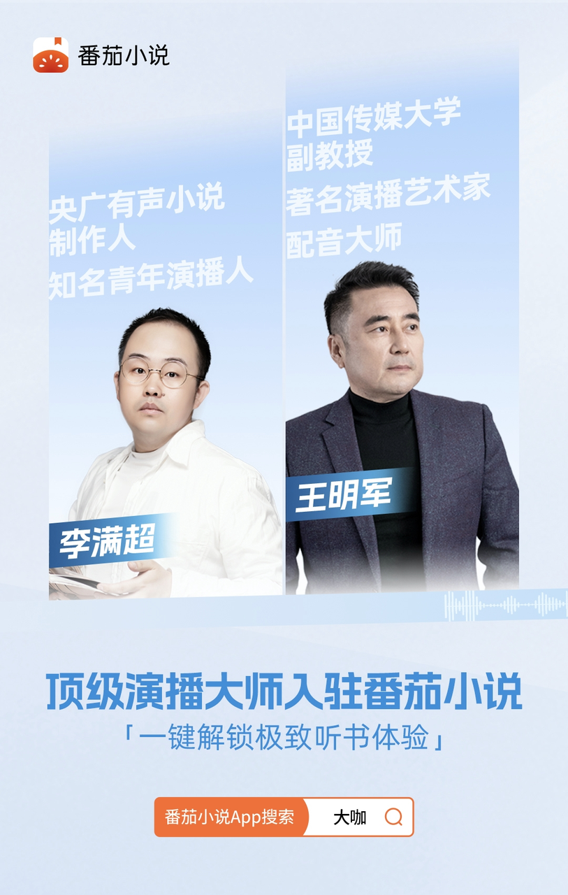 豆包語(yǔ)音模型團(tuán)隊(duì)以王明軍、李滿超兩位演播圈大咖的聲音為基礎(chǔ),采用新技術(shù)合成的有聲書,已上線番茄小說,受到用戶的廣泛歡迎。