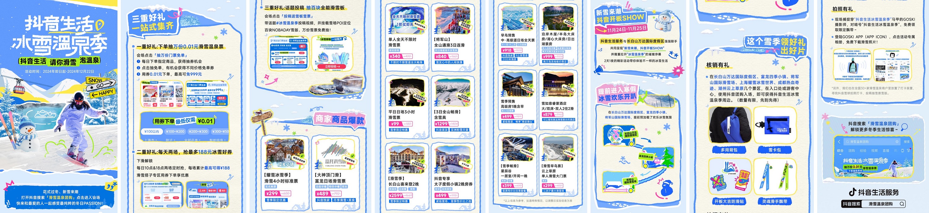 從各類用戶傳統(tǒng)意義上的滑雪和溫泉等生活方式的深度挖掘,到“新雪來潮”快閃活動的創(chuàng)意呈現(xiàn),抖音生活服務(wù)以獨特的時尚潮流為冬日生活注入更多新趣活力,創(chuàng)造出獨一無二的冬季休閑模式! 助力商家品牌成長,展示抖音生活服務(wù)多維價值 好生意“玩”出來“新雪來潮”快閃活動洞察到冬季活動年輕化、互動性趨勢,以創(chuàng)意巧思為驅(qū)動,平臺IP勢能聯(lián)動七大熱門雪場與優(yōu)質(zhì)品牌商家,完成了多品牌、多品類、多場景的聯(lián)合營銷大事件。將用戶和商家的需求精準(zhǔn)鏈接,尤其是針對年輕消費群體撬動龐大的興趣流量,為生活服務(wù)品牌探索出一條提升品效的增長路徑,協(xié)助商家立好心智、做大聲量、提升銷量。 抖音作為生活服務(wù)平臺的角色,也再度向外界展示生活服務(wù)多維價值,加深了與各大商家的合作關(guān)系,為未來更多的跨界合作奠定了基礎(chǔ)。 本次“新雪來潮”快閃活動的成功舉辦,標(biāo)志著抖音生活服務(wù)在打造沉浸式線下體驗方面邁出了堅實的一步。通過這次合作,我們見證了抖音生活服務(wù)與各大商家共同努力下所創(chuàng)造的精彩瞬間,也為未來的合作模式提供了寶貴的參考案例。希望未來能有更多這樣富有創(chuàng)意且貼近生活的活動出現(xiàn),持續(xù)為用戶帶來驚喜與感動。