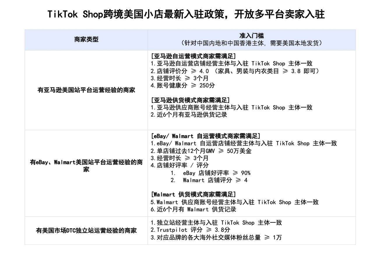 TikTok Shop跨境電商美國市場招商入駐政策調(diào)整,開放亞馬遜、Ebay、Walmart、獨立站等平臺賣家入駐