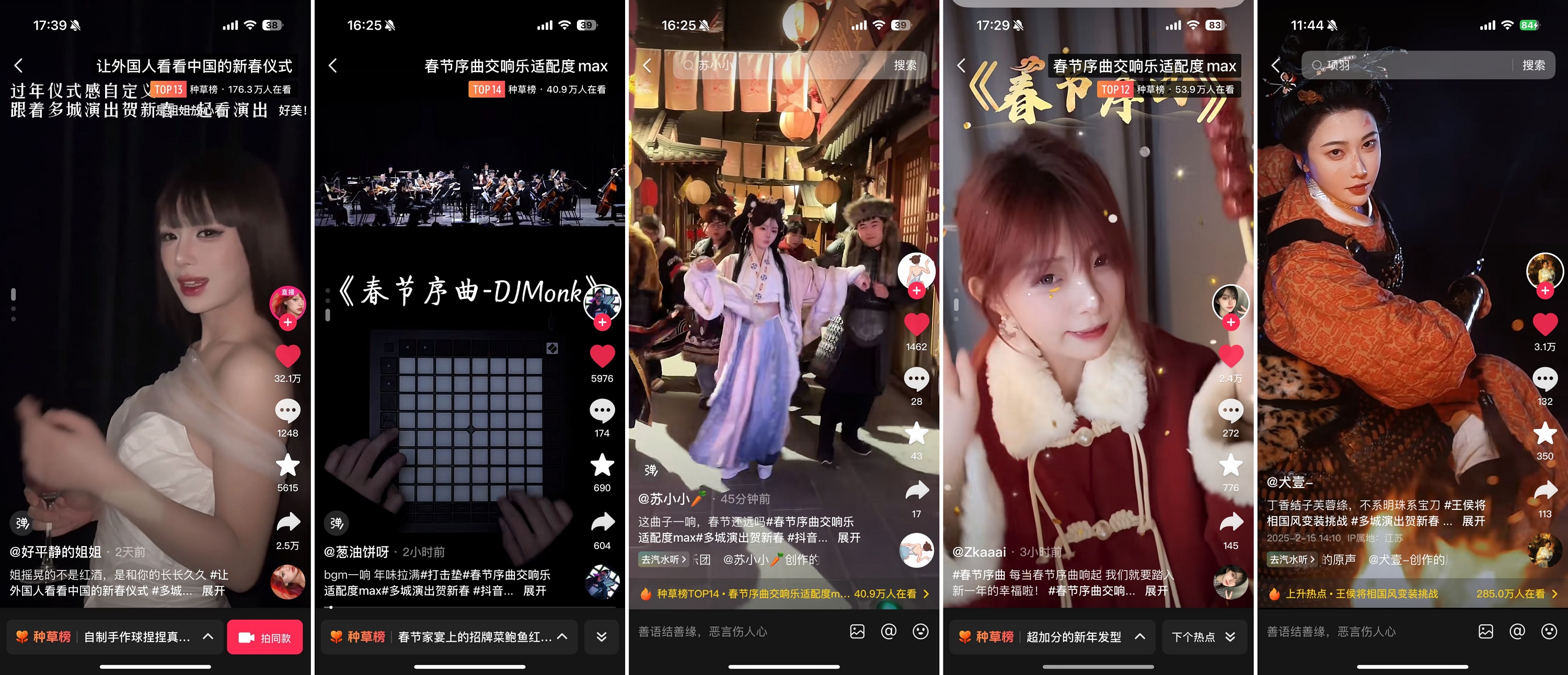 此外,眾多創(chuàng)作者以演出激發(fā)靈感,開啟了多元?jiǎng)?chuàng)作場(chǎng)景,讓奇思妙想的火種在抖音平臺(tái)上迅速蔓延。來自音樂、舞蹈、戲曲等不同領(lǐng)域的39位創(chuàng)作者解鎖了多種新春玩法:花式秀出年輕人過年儀式感、歌舞演繹形式爆改《春節(jié)序曲》、參與任藝飛發(fā)起的#王侯將相國(guó)風(fēng)變裝挑戰(zhàn)等,觸達(dá)用戶超2500萬次,讓演出的影響力持續(xù)深入更多圈層。