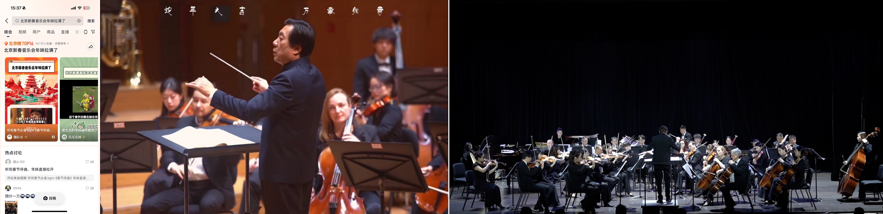 新春期間,北京愛樂匯交響樂團(tuán)在國(guó)家一級(jí)指揮范燾的引領(lǐng)下,奏響了新年音樂華章?!督鹕呖裎琛沸砂簱P(yáng)、鑼鼓伴奏鏗鏘,《春節(jié)序曲》旋律歡快跳躍,大量民族特色旋律將新春的熱烈與蛇年的歡騰展現(xiàn)得淋漓盡致,喚醒了人們心底對(duì)春節(jié)最真摯的共鳴。#北京新春音樂會(huì)年味拉滿了話題順勢(shì)上線,登上北京榜 TOP16,為北京的新春氛圍增添了一抹濃厚的藝術(shù)氣息。