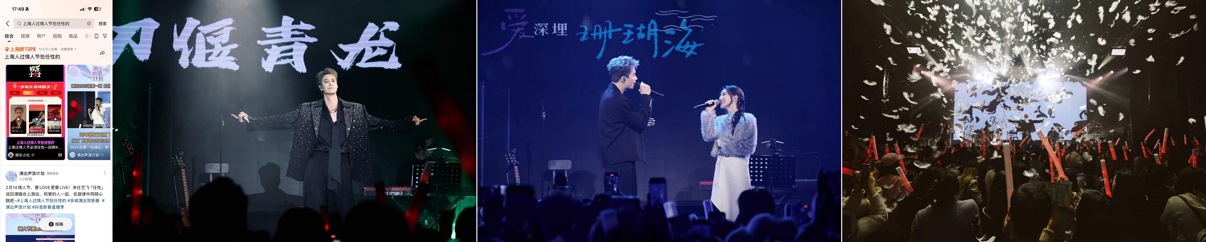 2月14日情人節(jié)當(dāng)晚,活動(dòng)攜手國(guó)風(fēng)音樂人任藝飛,把“想你的風(fēng)”吹到了上海,「任性」巡回演唱會(huì)上海場(chǎng)浪漫開演。#上海人過情人節(jié)包任性的話題應(yīng)運(yùn)而生,精準(zhǔn)擊中網(wǎng)友興趣點(diǎn),迅速?zèng)_上種草榜 & 上海同城榜雙榜 TOP8,吸引了更多網(wǎng)友關(guān)注這場(chǎng)融合音樂與節(jié)日氛圍的浪漫演出。在演出現(xiàn)場(chǎng),任藝飛將傳統(tǒng)元素與現(xiàn)代音樂風(fēng)格極致融合,用他極具感染力的嗓音,將歌曲中的豪情壯志與民族風(fēng)骨展現(xiàn)得淋漓盡致,為蛇年新春的浪漫情人節(jié)增添了一抹獨(dú)特的色彩 。