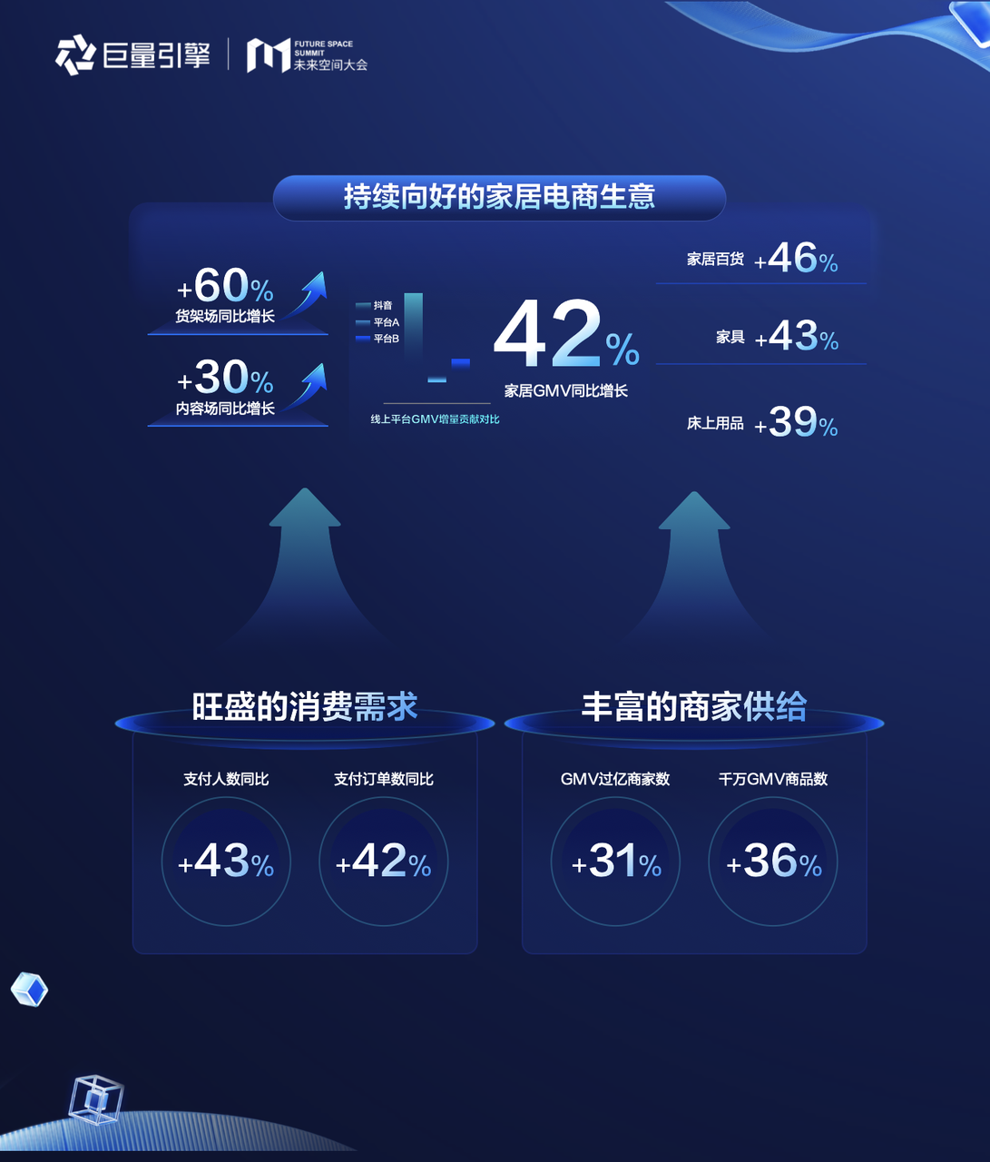 2024年,家居消費(fèi)線下市場穩(wěn)步回暖,抖音平臺的海量家居用戶,為家居商家的線上增長,提供了巨大的空間,巨量引擎電商+團(tuán)購+線索的立體生意經(jīng)營模式,成為家居生意增長的重要引擎。