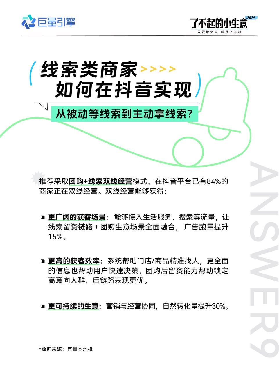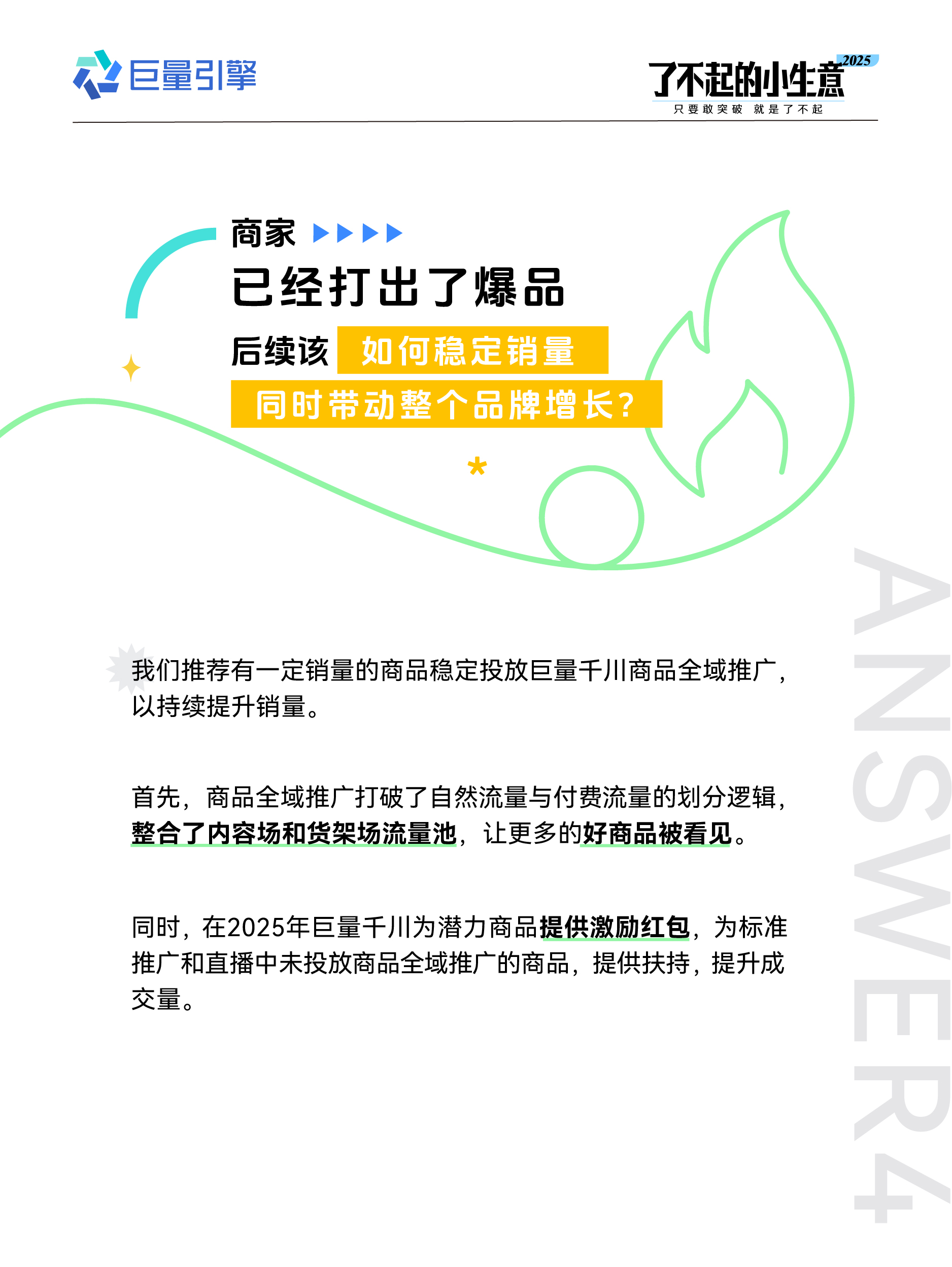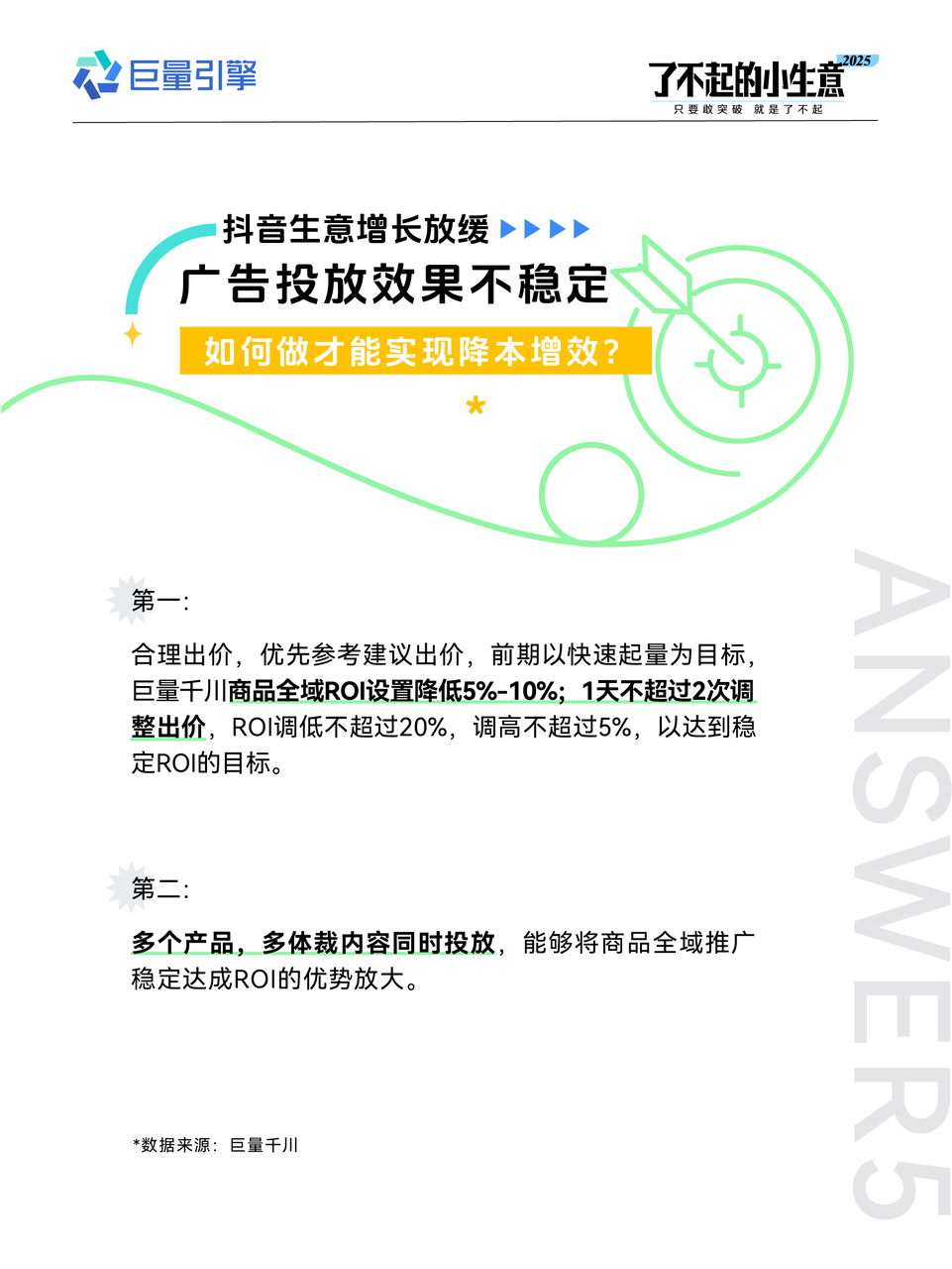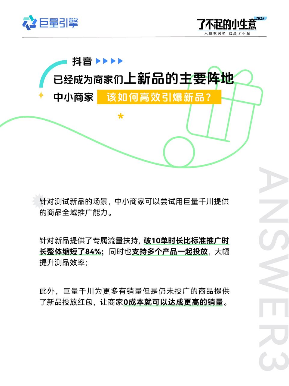 為高效解決商家困惑,巨量引擎帶來了電商生意場景與本地生意場景的年度核心疑問的答疑,從內(nèi)容場到貨架場,從本地團(tuán)購交易到線索經(jīng)營,一一答疑解惑,撥開迷霧,讓更多的小生意在 2025 年都可以實現(xiàn)一次又一次的 「大突破」!