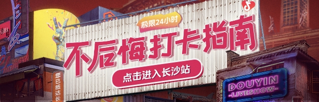 同時(shí)長(zhǎng)沙站還發(fā)布了「極限24小時(shí)·不后悔打卡指南」,在欣賞演出之余,查看長(zhǎng)沙當(dāng)?shù)囟兑粲脩粝矏?ài)的吃喝玩樂(lè)好去處,打卡不后悔的新奇體驗(yàn)!抖音搜索“不后悔打卡指南”進(jìn)入話題,一鍵獲取長(zhǎng)沙夜City、土著愛(ài)吃的熱辣餐廳、Citywalk打卡地等攻略指南,一起吃“湘”喝辣!