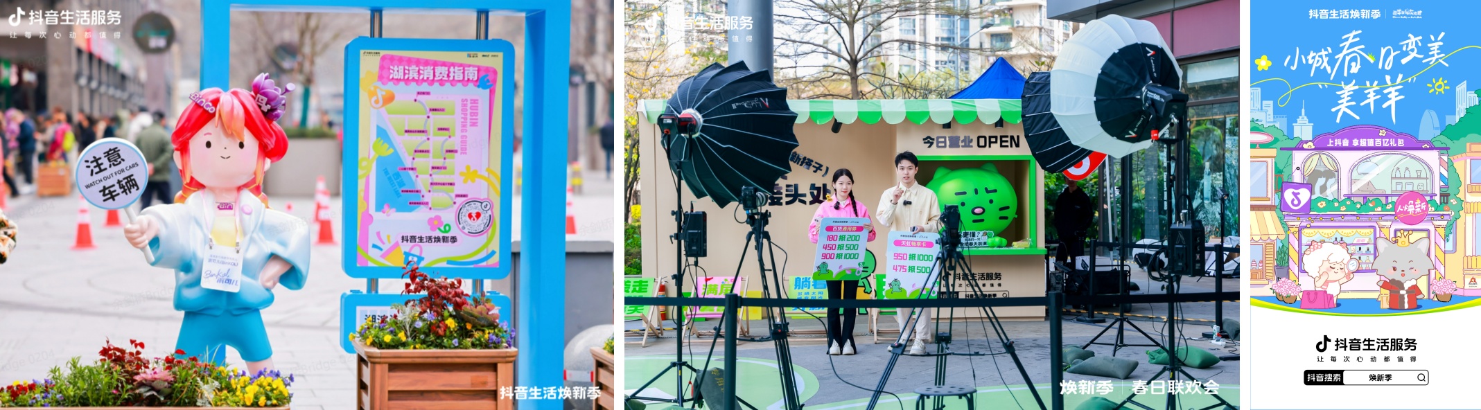 「抖音生活煥新季」帶著濱可兒、焦綠貓、喜羊羊與灰太狼等不同IP與城市跨界聯(lián)動(dòng),契合不同城市的氣質(zhì),打造高流量互動(dòng)打卡點(diǎn),挖碰撞出不一樣的春日趣味。融入城市生活的過(guò)程中,用戶(hù)找到了更多春日煥新目的地,而「抖音生活煥新季」也讓平臺(tái)、用戶(hù)和商家互動(dòng)出更深的情感聯(lián)結(jié)。