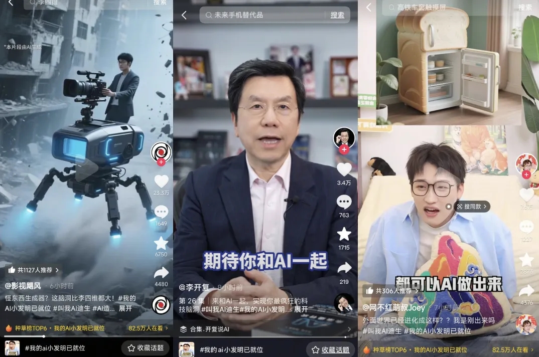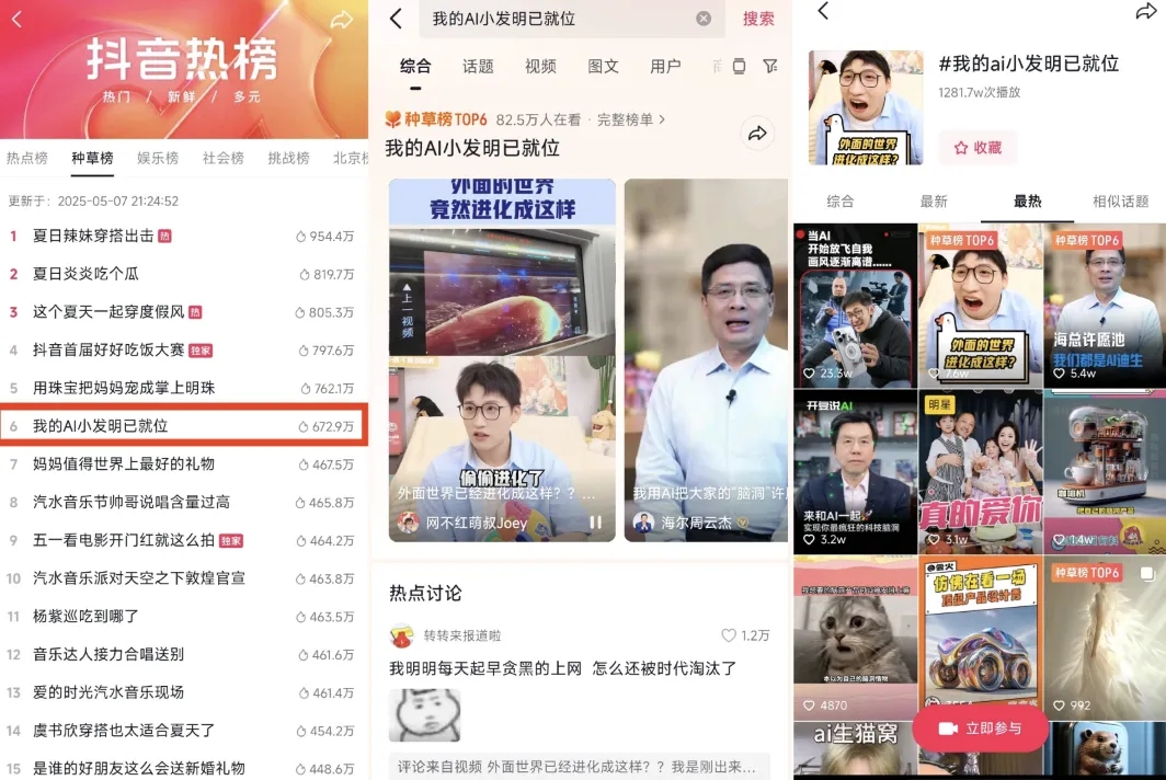 用戶們熱情高漲,紛紛曬出自己的AI作品,截止發(fā)稿前,#我的AI小發(fā)明已就位 話題播放量已超5800萬(wàn),投稿量超過(guò)1萬(wàn)。