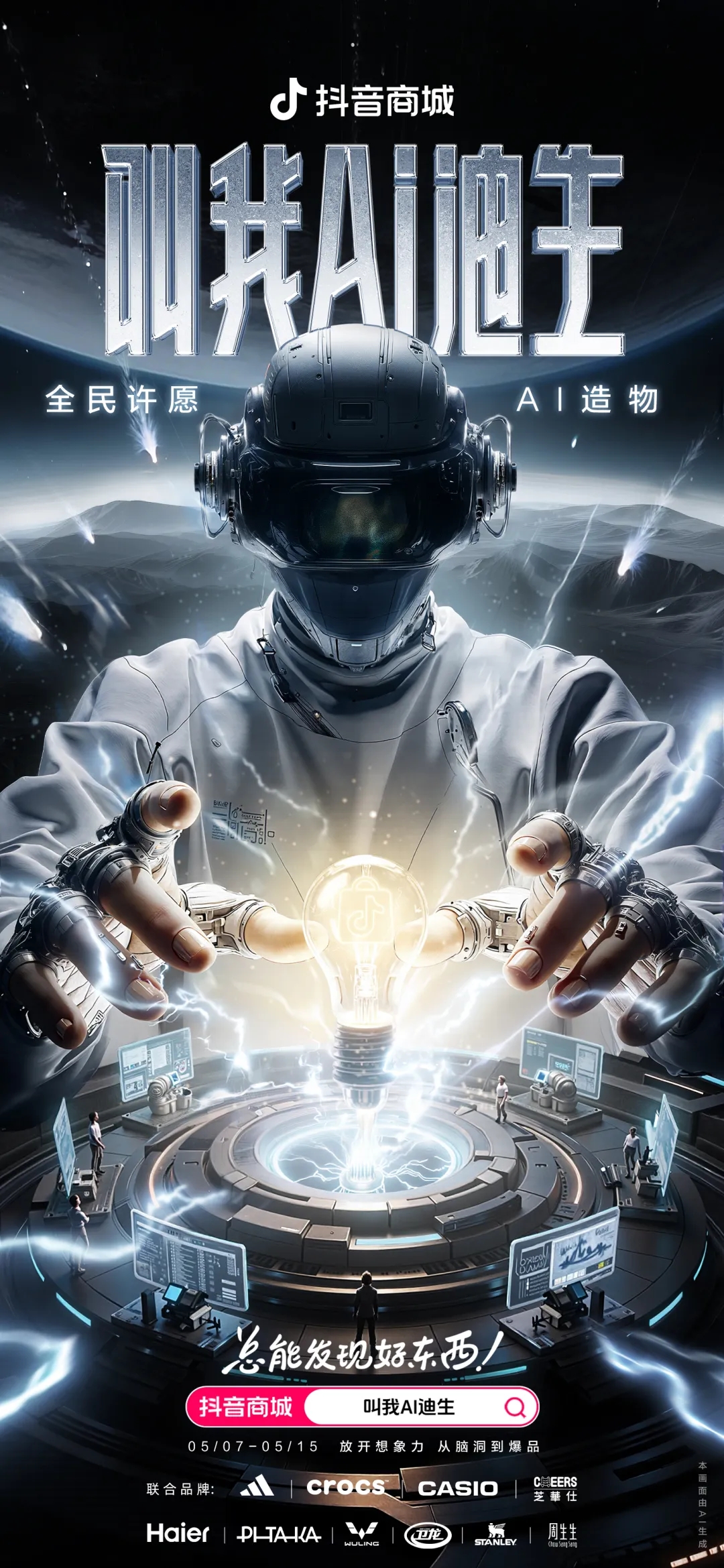 在此背景下,抖音電商發(fā)起的一場(chǎng)名為“叫我AI迪生”的創(chuàng)意活動(dòng),便生動(dòng)詮釋了AI如何賦能這場(chǎng)“供需合拍”的營(yíng)銷(xiāo)變革。