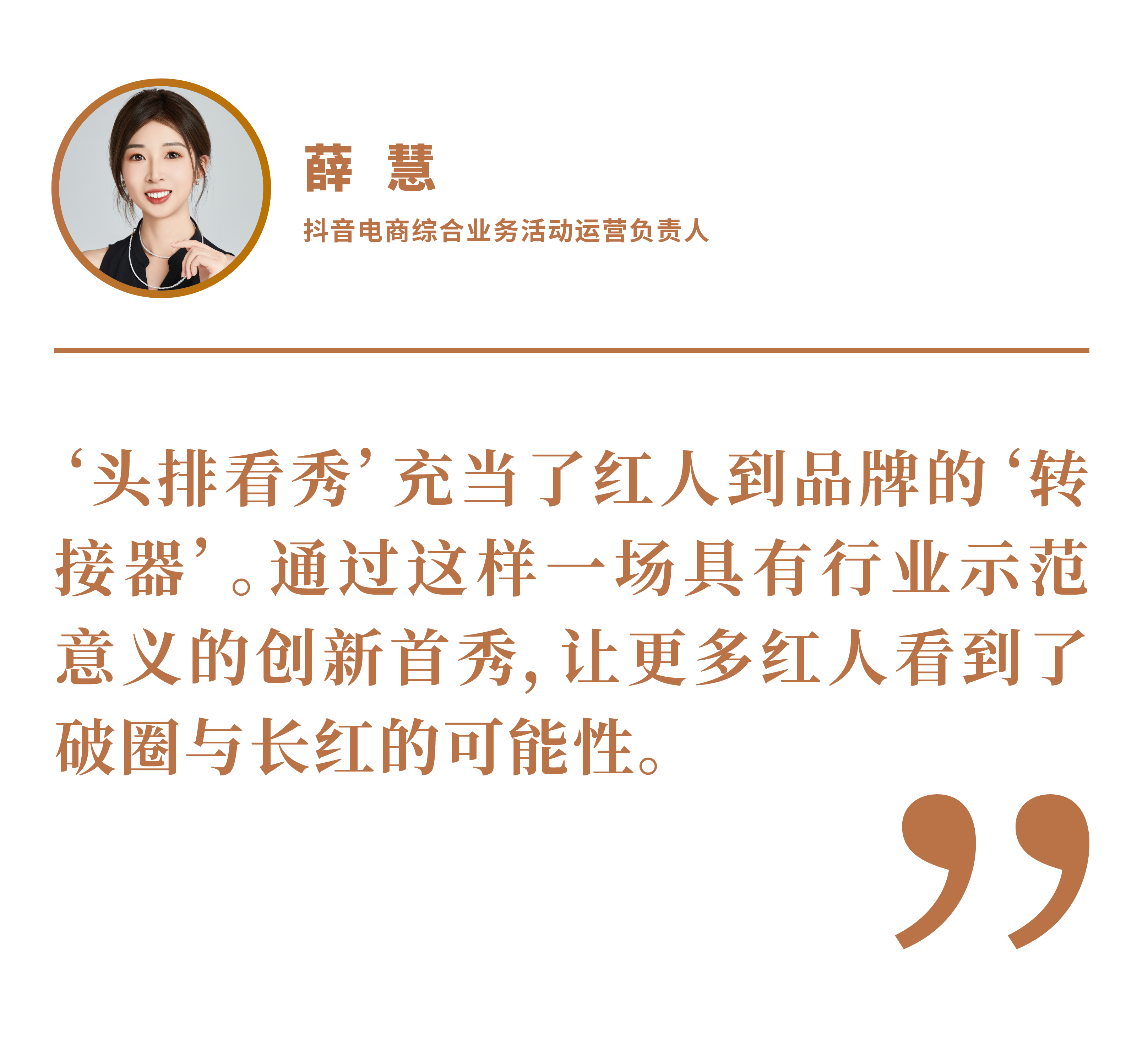 品牌還能通過與“頭排看秀”這樣的內(nèi)容營銷項目合作,用創(chuàng)新性、有深度的內(nèi)容放大紅人影響力、提升品牌價值,從而幫助紅人實現(xiàn)更廣維度的“圈粉”,走入大眾視野。