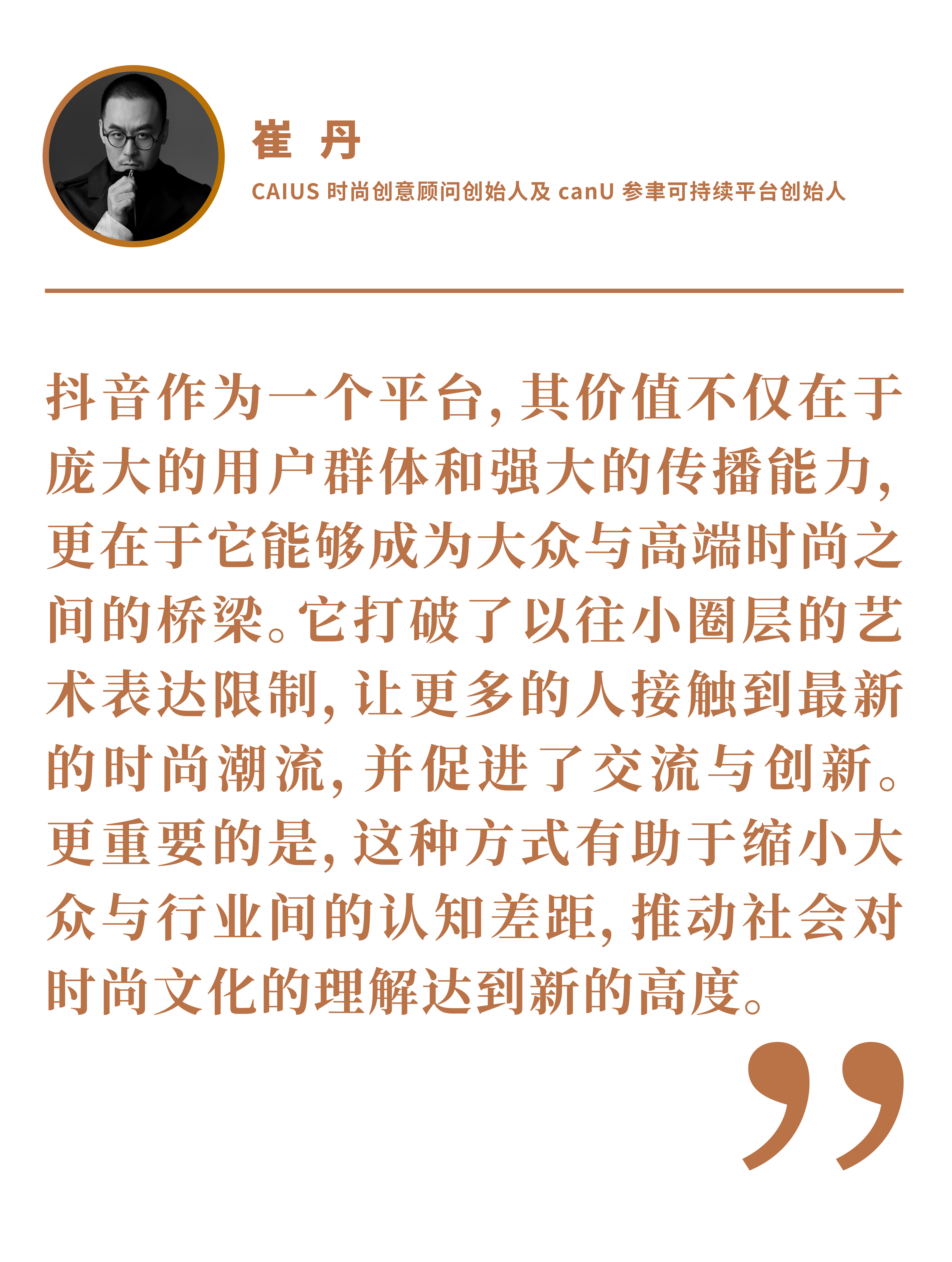 在崔丹的眼中,時尚品牌能夠通過抖音直播這樣的新形式獲得更多用戶的認同感。