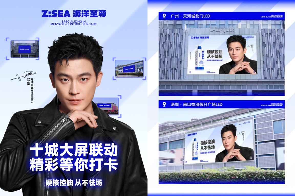 官宣代言人后,海洋至尊還通過北京、上海等10城地標(biāo)大屏廣告、杭州核心商圈及美博會周邊媒體覆蓋,以及在小紅書、抖音、微博等社交平臺的持續(xù)加熱,將歐豪的硬漢形象與“硬核控油從不怯場”的品牌心智深度融合,精準(zhǔn)觸達(dá)目標(biāo)人群,全方位強(qiáng)化了品牌“男士控油護(hù)膚專家”的定位,更讓控油從功能訴求升華為“自信掌控人生”的精神符號。