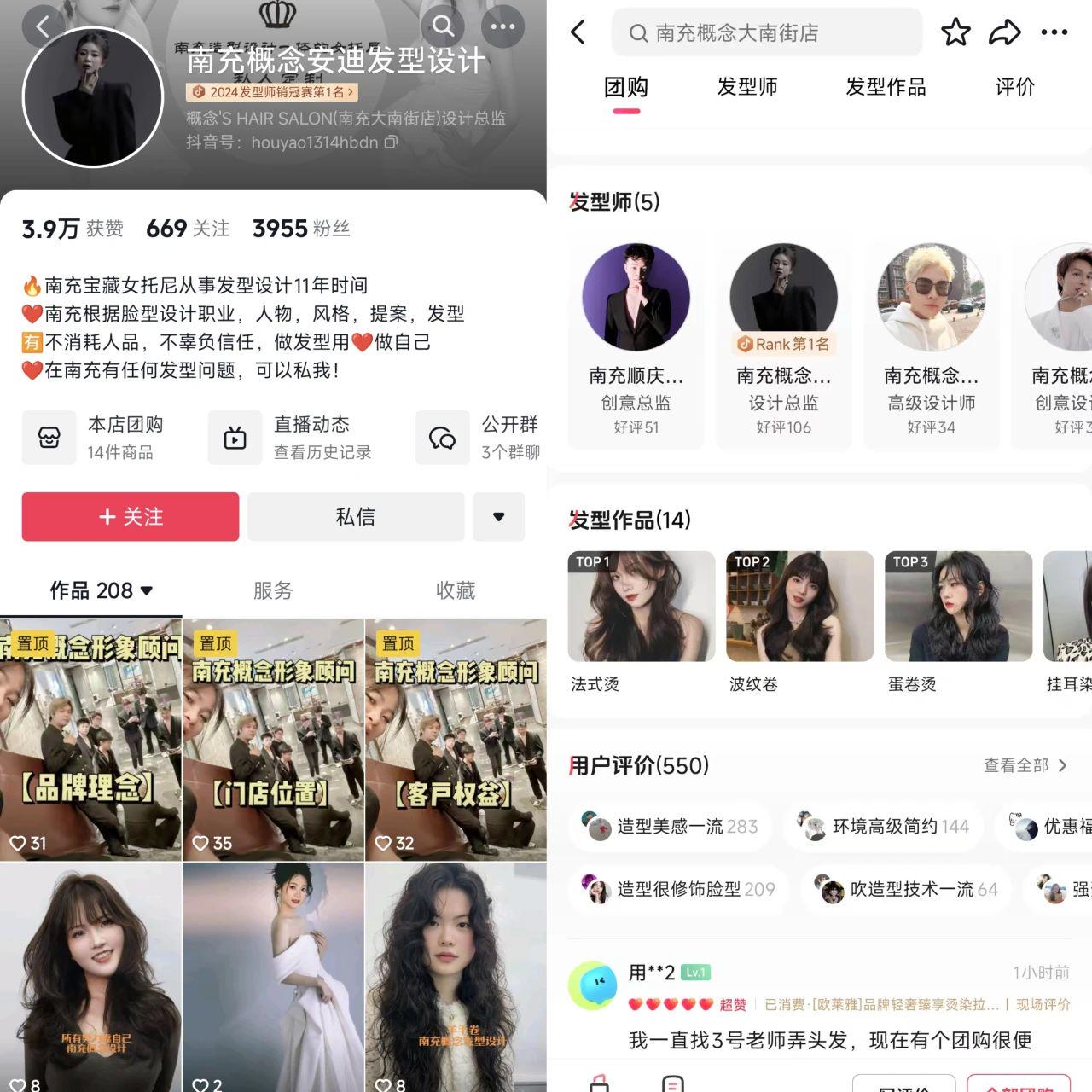 之所以能有如此成效,離不開(kāi)直播、短視頻的實(shí)景展示,讓顧客在到店之前就能預(yù)見(jiàn)效果。這極大地提升了顧客的成單意愿和好感度。對(duì)于這一點(diǎn),南充概念理發(fā)店的安迪也深有感觸。