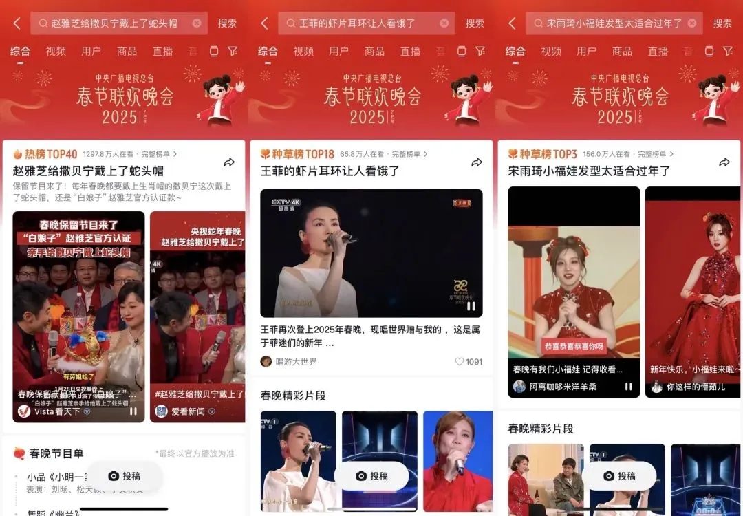 春晚盡管流量勢能大,但并不意味著所有平臺都能承接住這波流量。而抖音電商作為流量熱點的集散地,從春晚臺前幕后、實時熱點再到原生強互動的UGC內(nèi)容,這些對春晚全景式的熱點內(nèi)容捕捉,本就激發(fā)了用戶更強烈的探索欲和搜索行為,這其實為品牌商家做好搜索營銷提供了內(nèi)容空間,商家可以一邊看春晚,一邊實時「蹭」熱點。