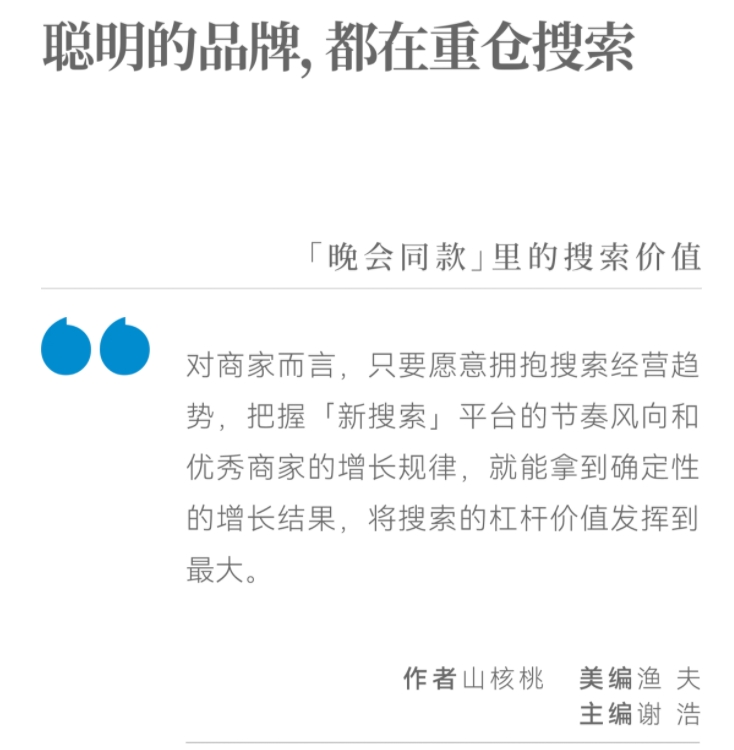 無論是新搜索,還是舊搜索,搜索經(jīng)營之所以受到商家的集體關注,本質(zhì)上存量時代人們對挖掘用戶更多潛在需求、發(fā)現(xiàn)更多營銷場景的迫切需求,搜索儼然已成為品牌商家們在精打細算年代里高效觸達用戶、謀求長期增長的關鍵武器,它的價值也自然迎來了重估。